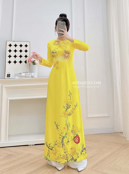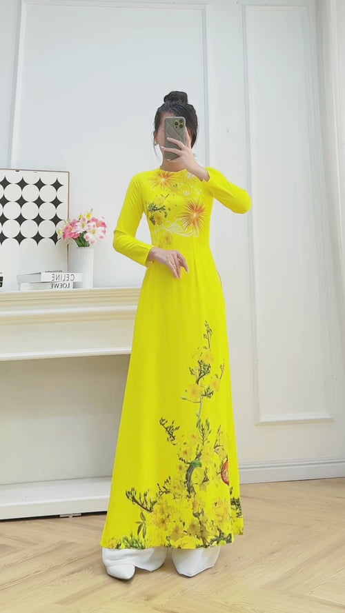 Golden Mai Radiance Vietnamese Traditional Ao Dai No Pants H1