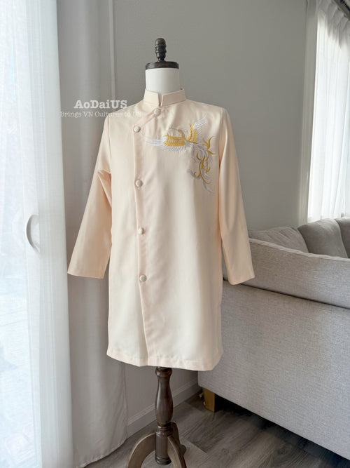 Cream Golden Phoenix Vietnamese Ao Dai Top for Men M4