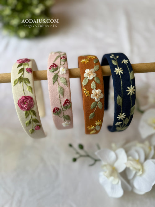 Floral Embroidered Linen Headband | Hand-Embroidered Turban Hairband N5