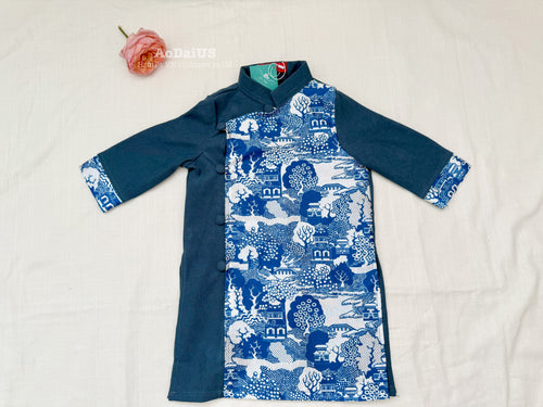 Blue Village Landscape Boy Vietnamese Ao Dai | Áo Dài Bé Trai E34