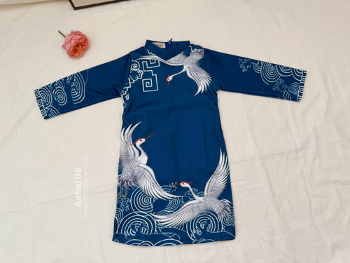 Blue Crane Embroidery Ao Dai Kid | Áo Dài Bé Trai C23