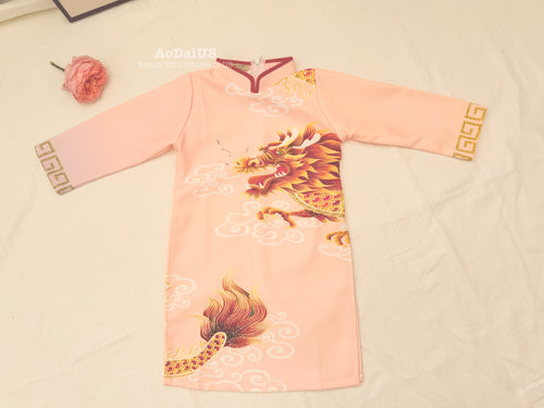 Peach 3D Dragon Ao Dai Kid | Dress For Boys | Áo Dài Bé Trai