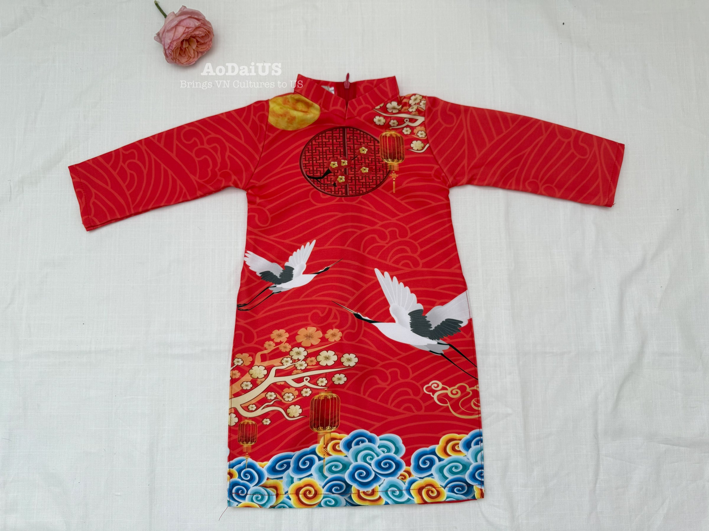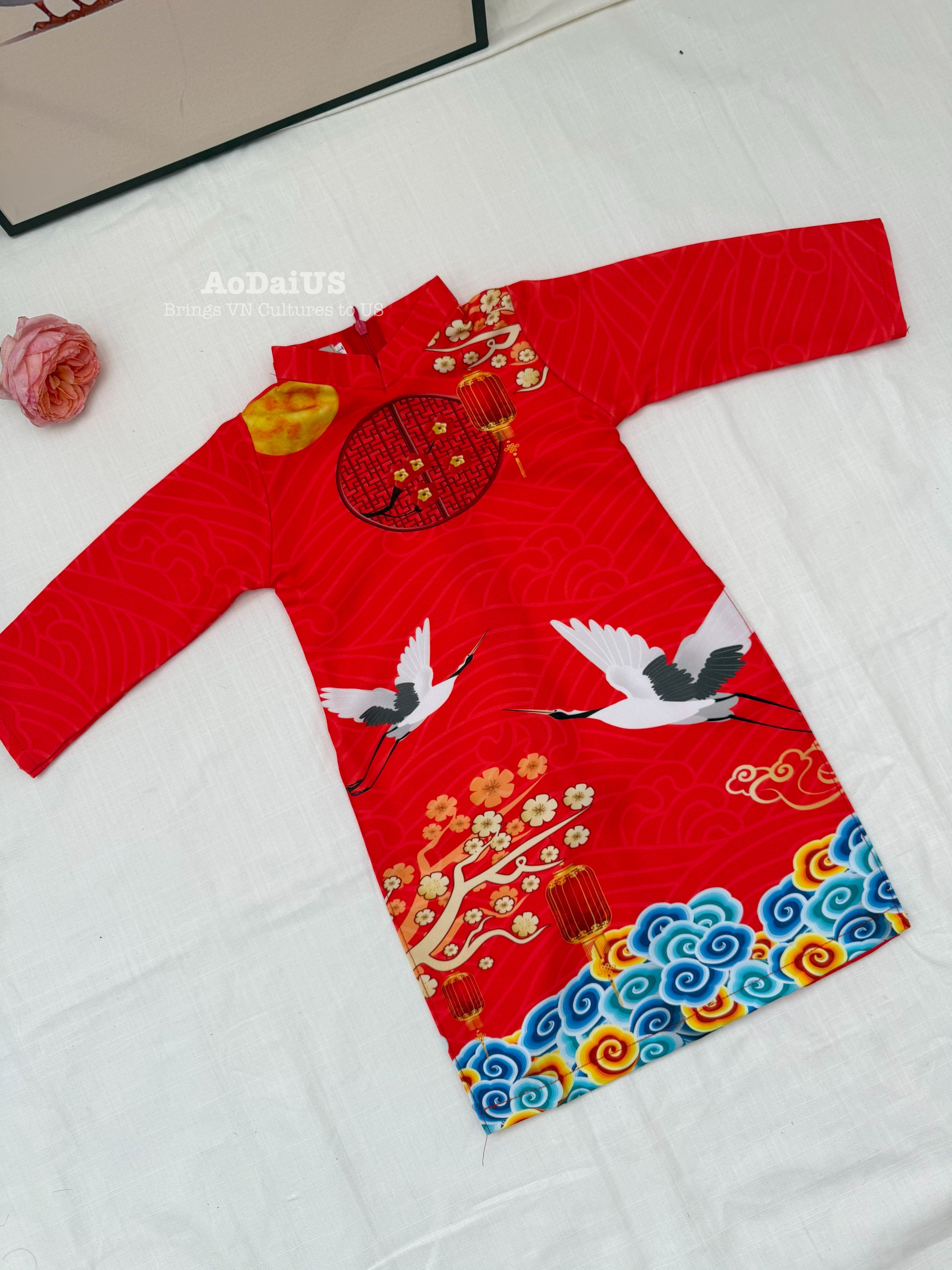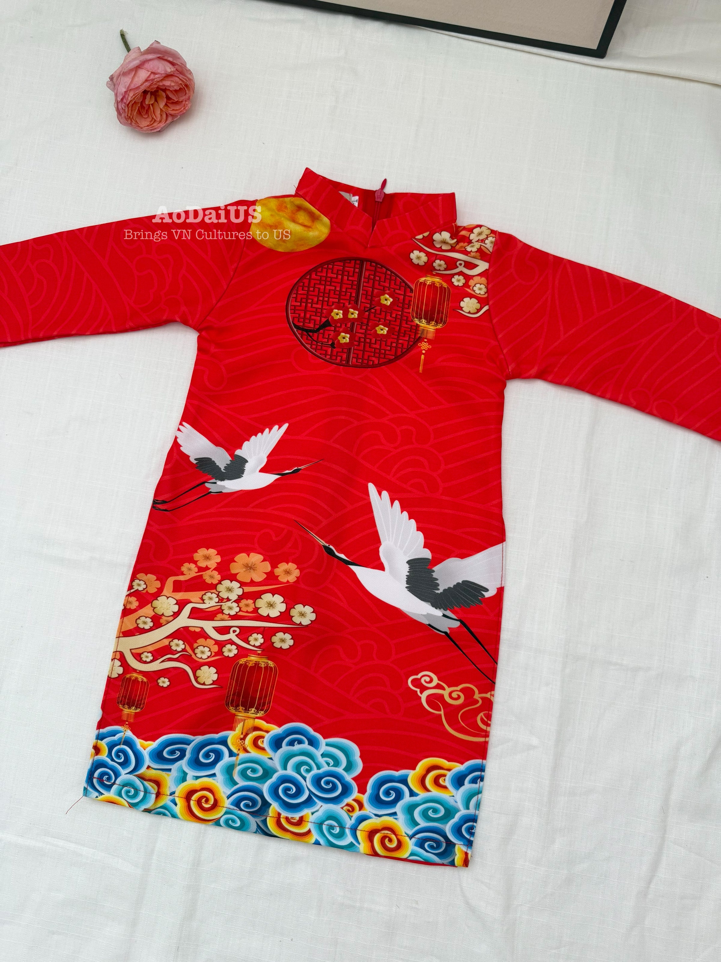 Red Lantern Cranes Boys Vietnamese Ao Dai | Áo Dài Bé Trai E34