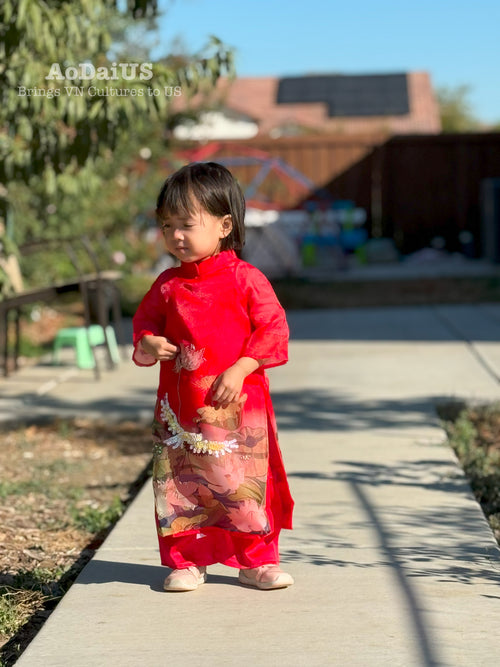 Red Floral Bloom Vietnamese Áo Dài Dress | Áo Dài Bé Gái D19