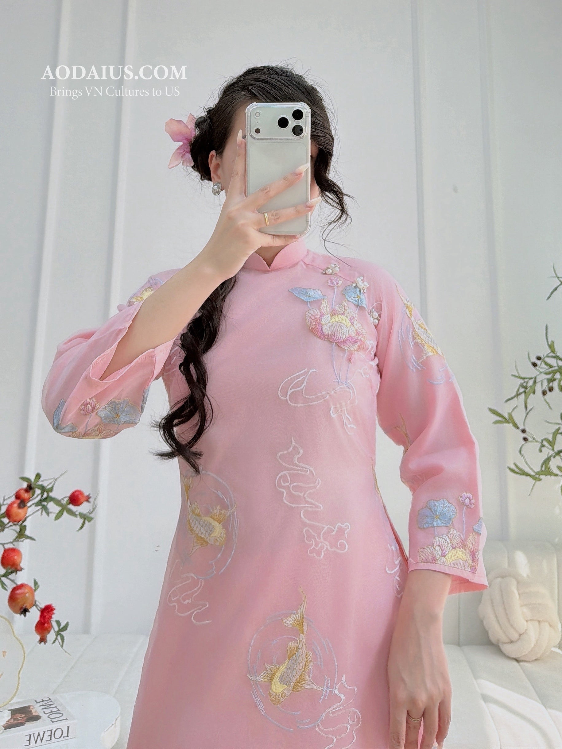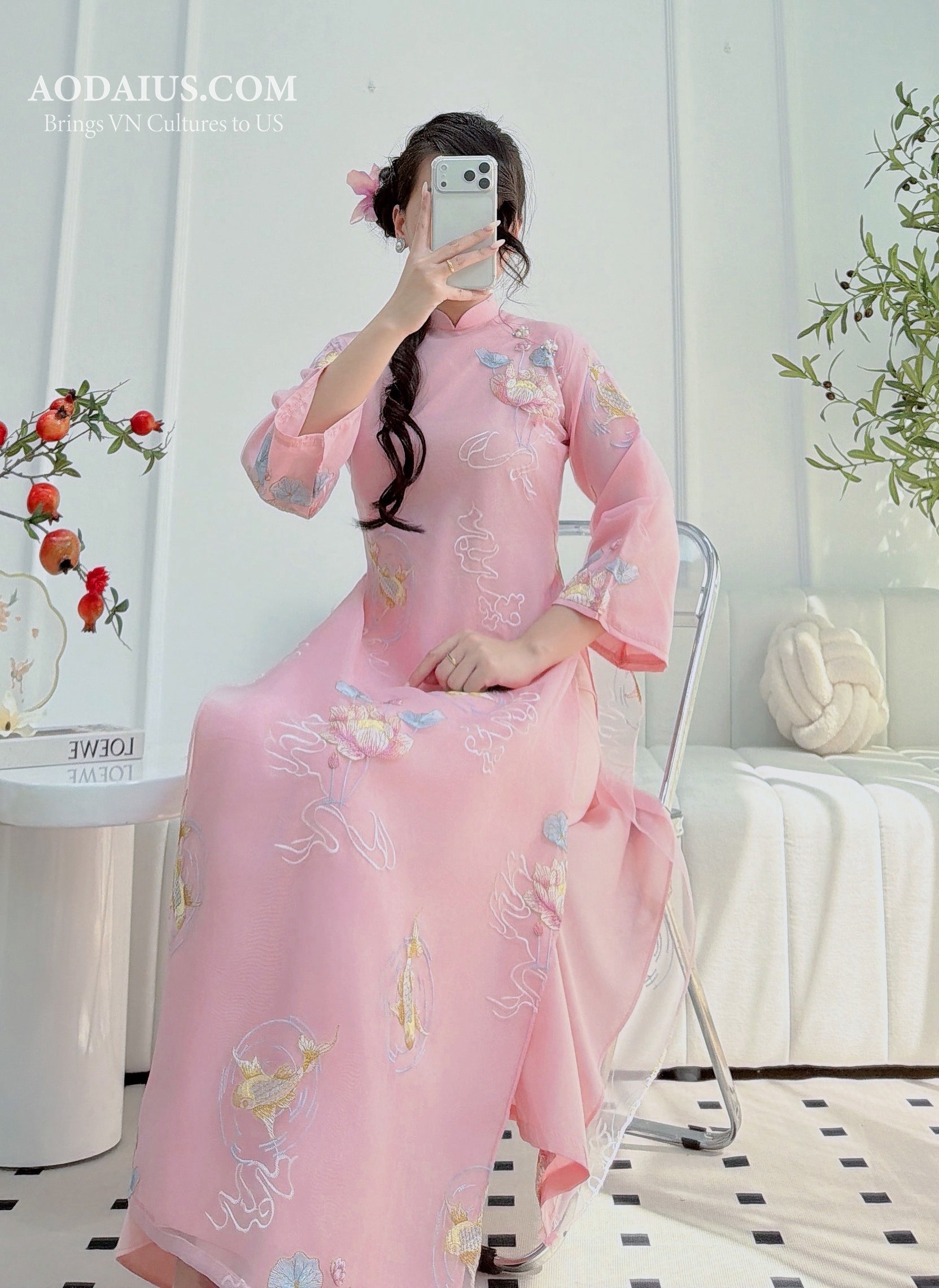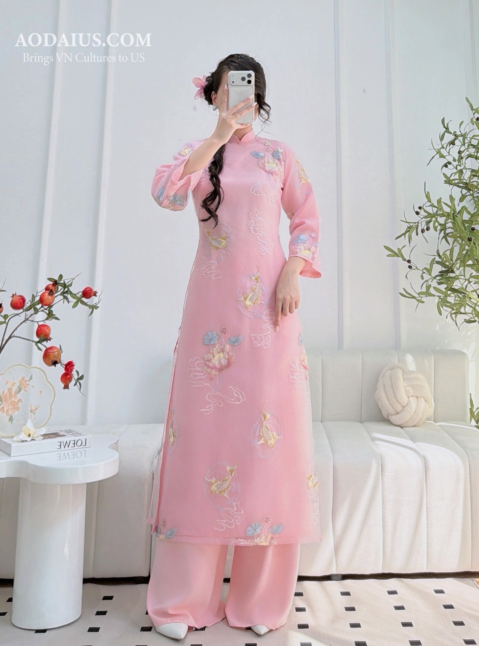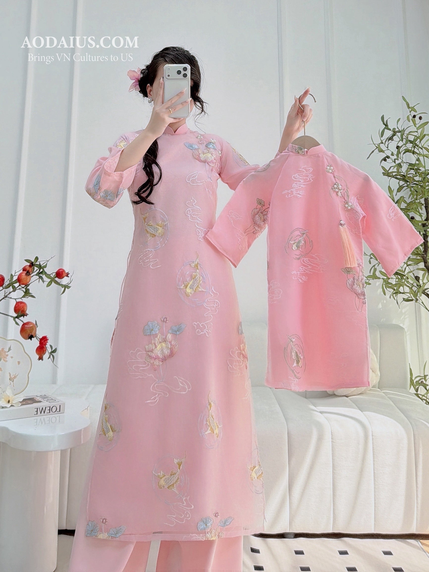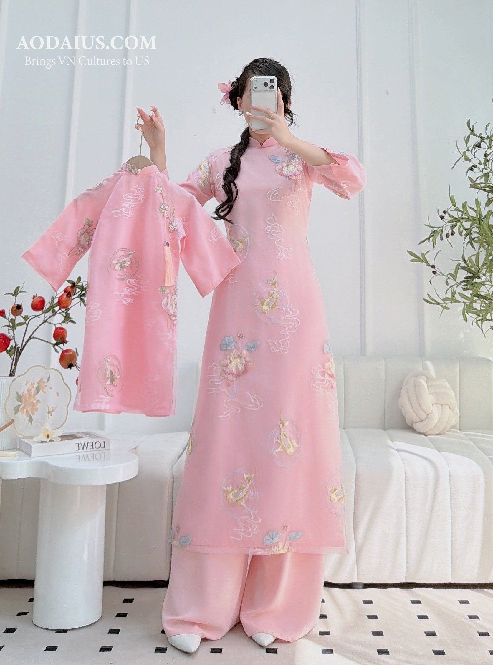 Pink Koi Lotus Mother Daughter Matching Ao Dai Set