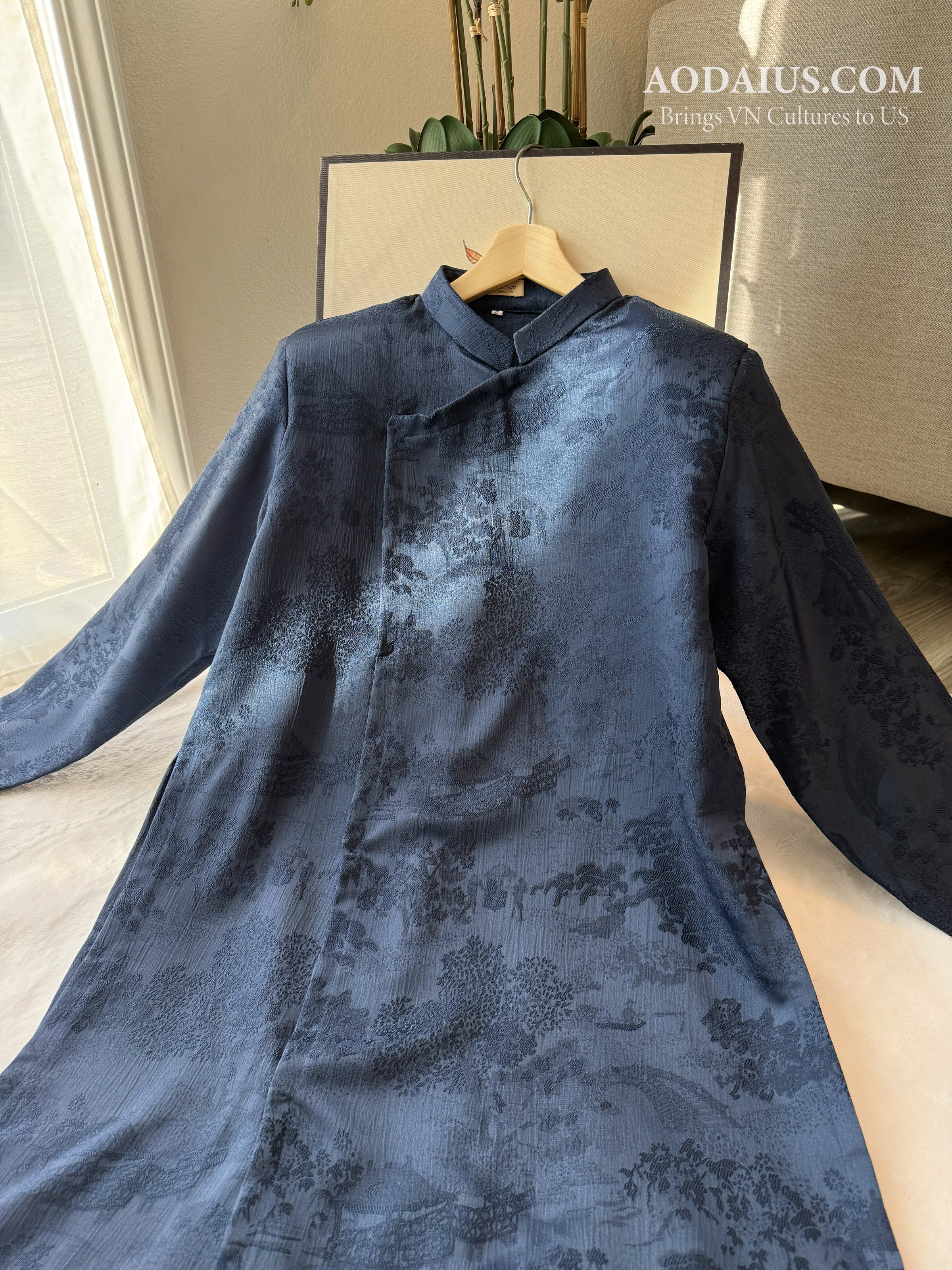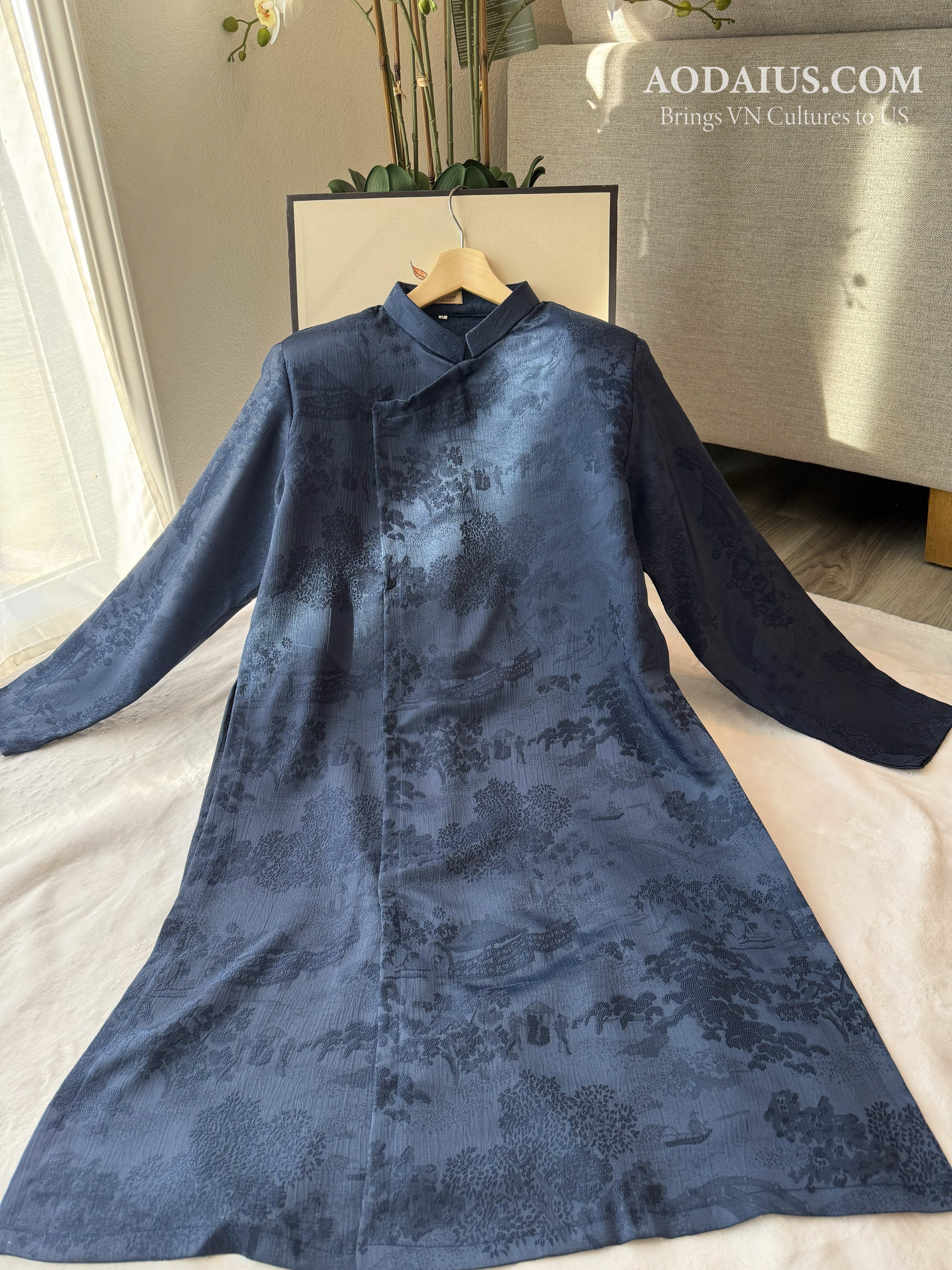 Blue Ao Dai Top for Men | Vietnamese Men Dress D16