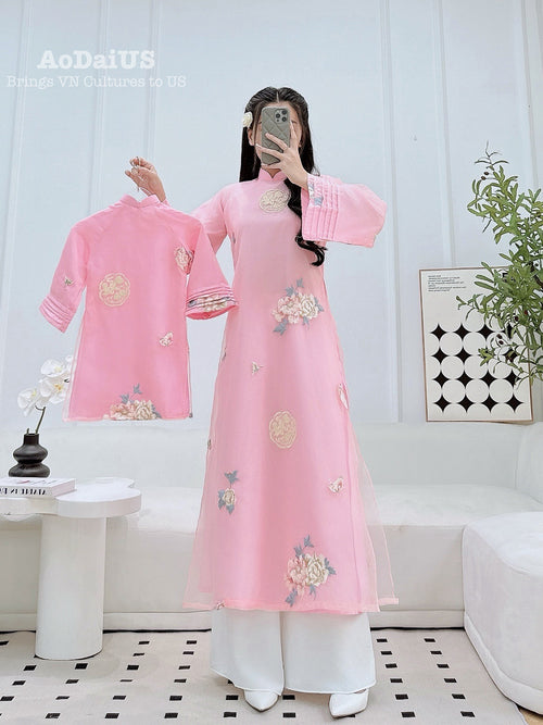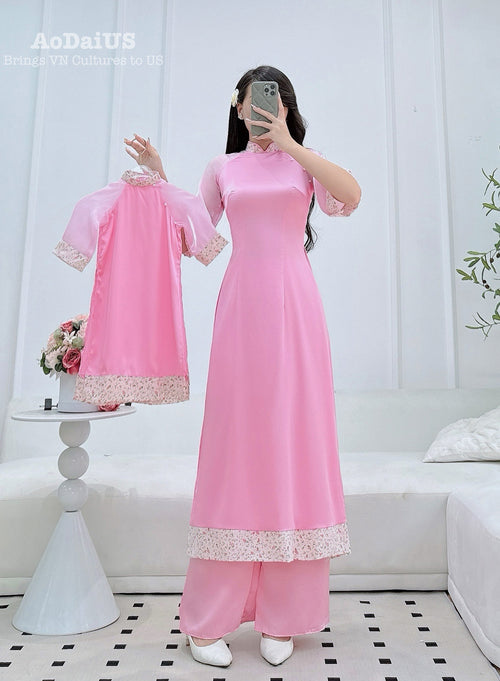 Pink Blossom Mother & Daughter Ao Dai | Sweet Rose Family Matching Ao Dai V4