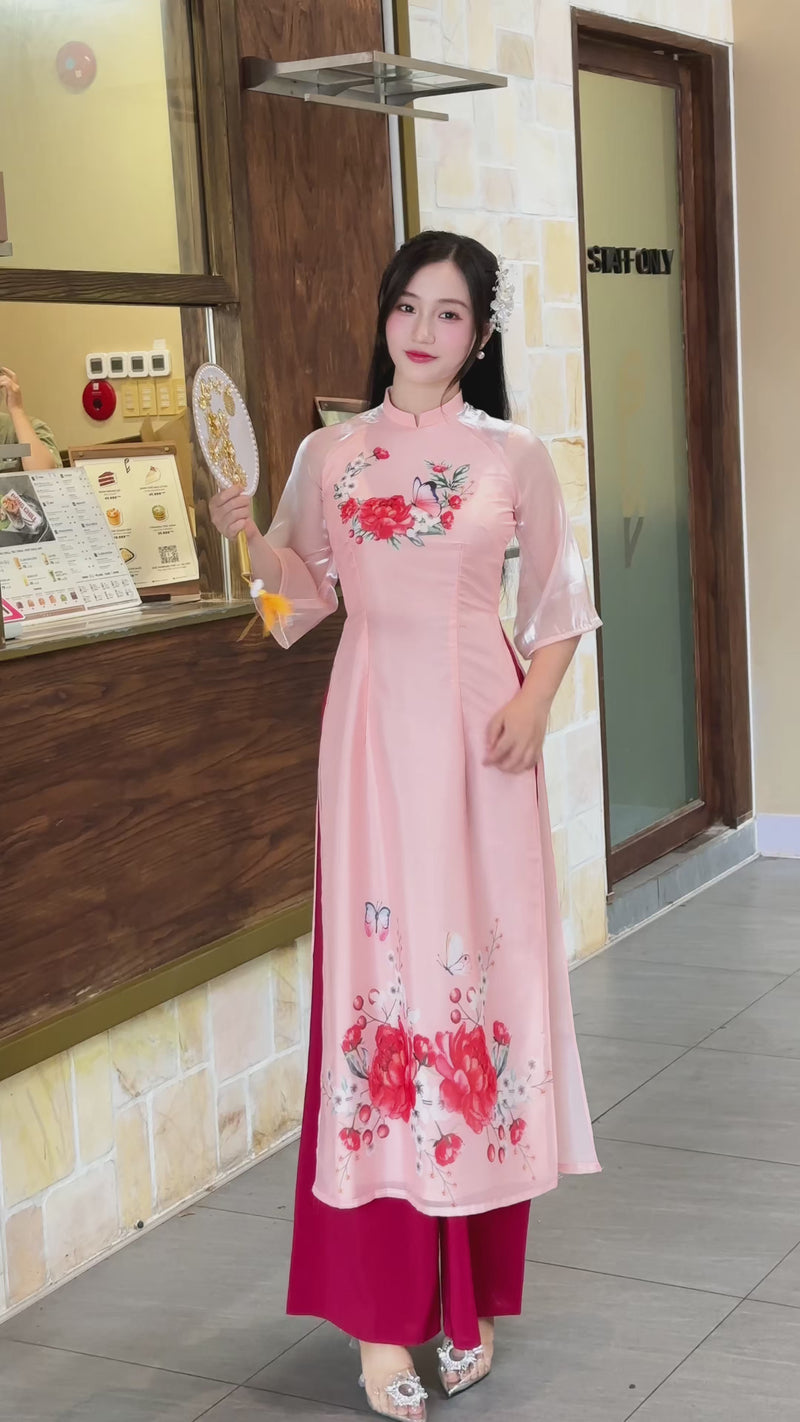 Floral Vietnamese Modern Ao Dai Set | Áo Dài Cách Tân A6