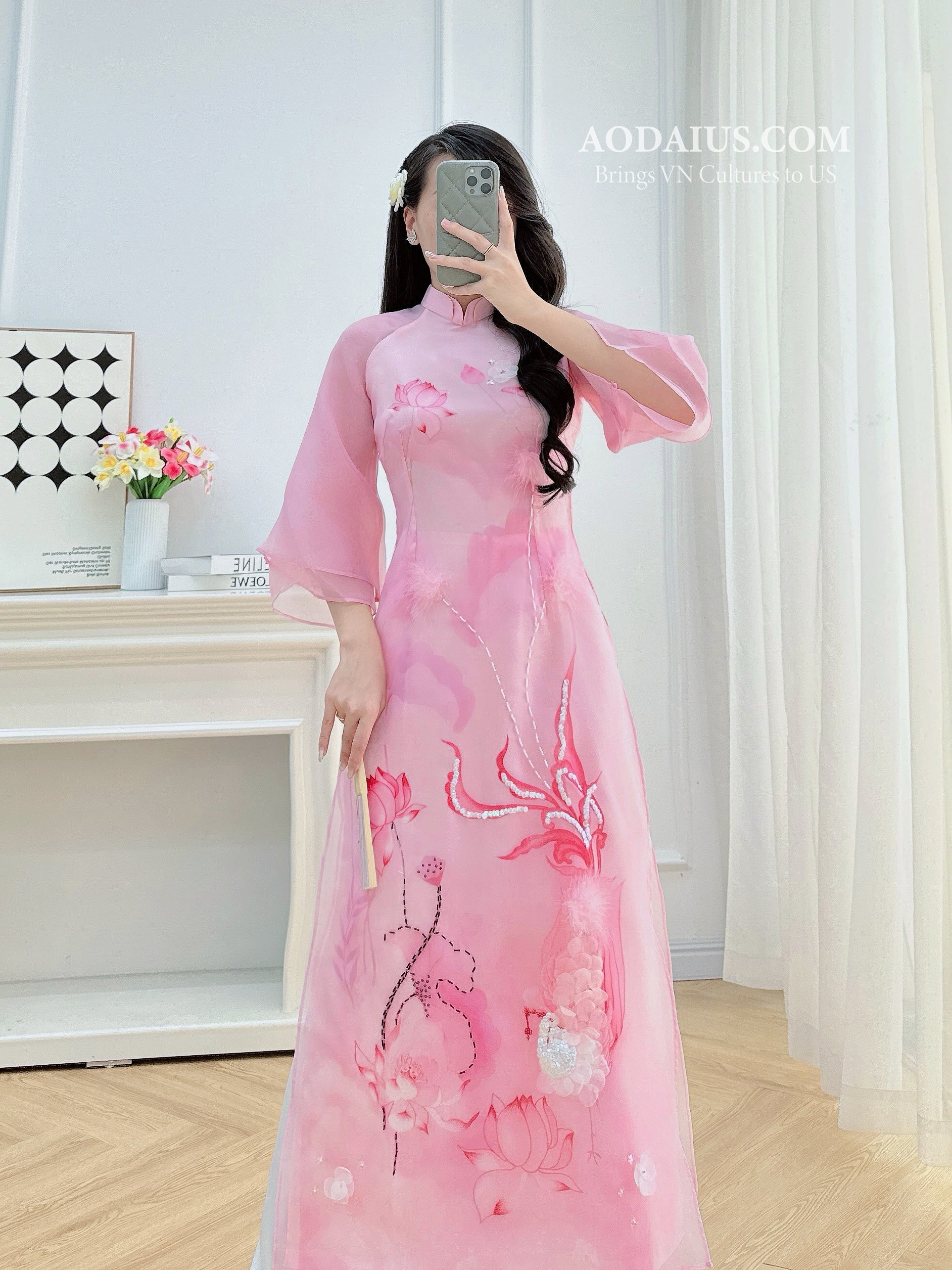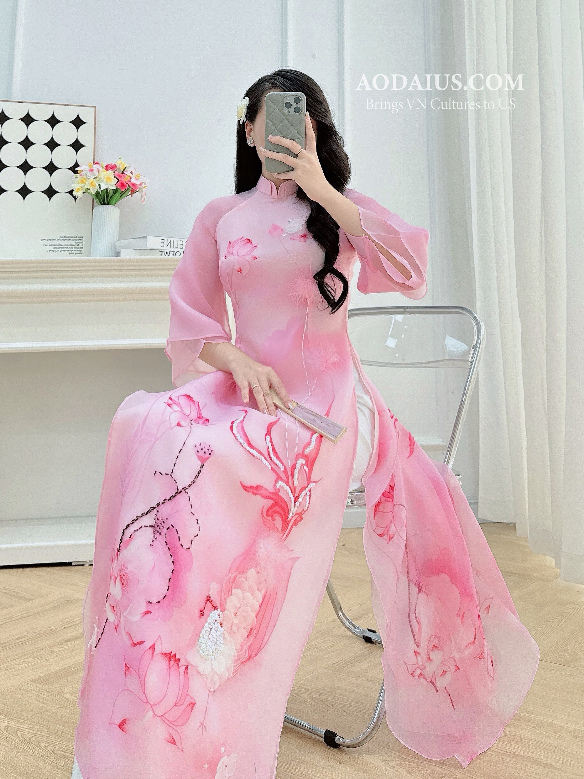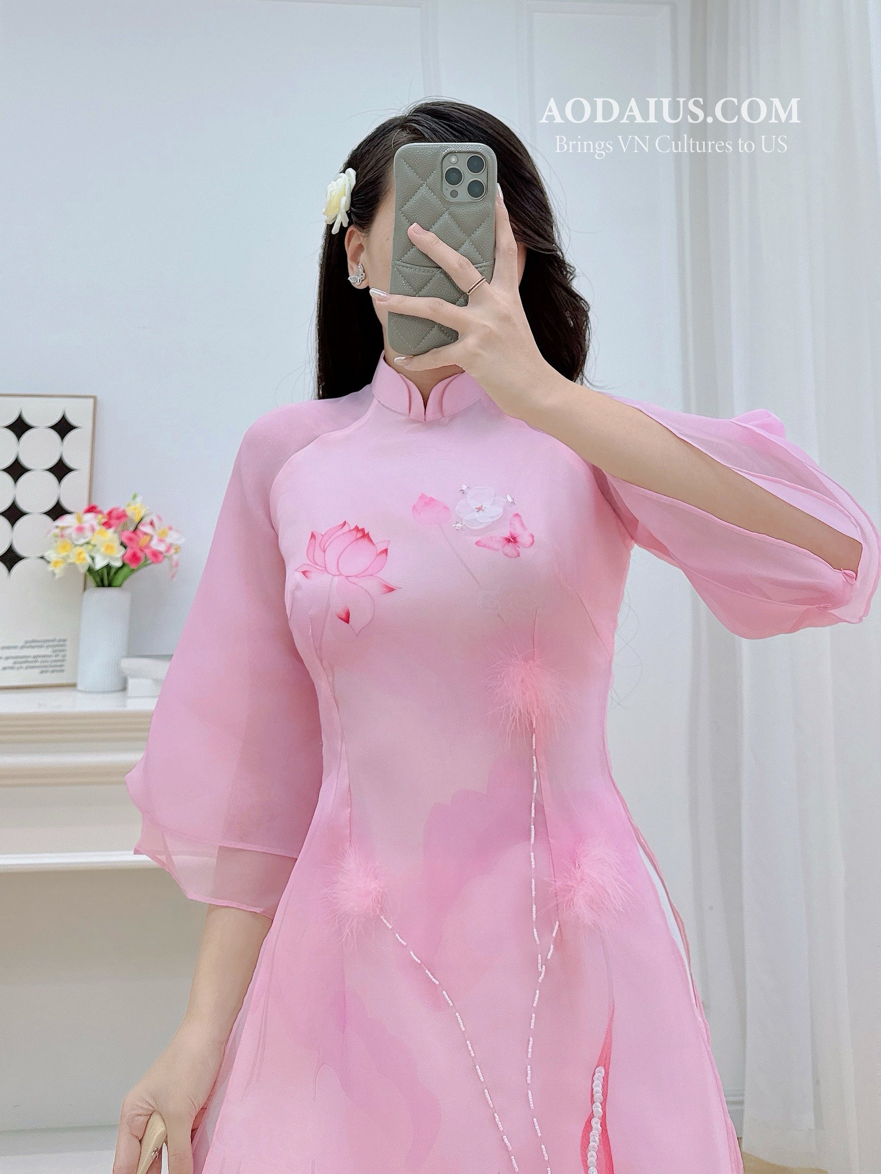Blush Lotus Vase Vietnamese Modern Ao Dai No Pants | Áo Dài Cách Tân O16