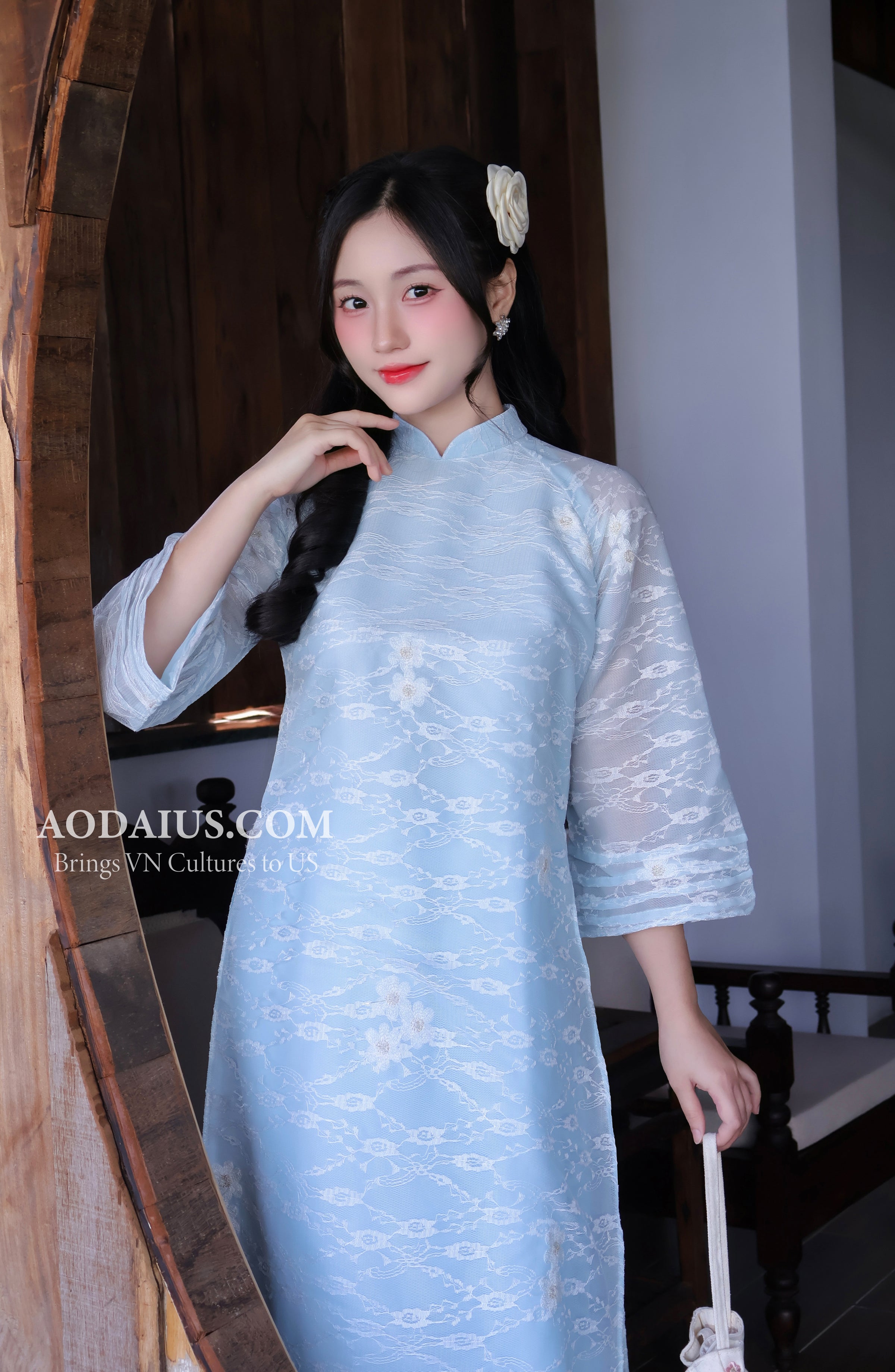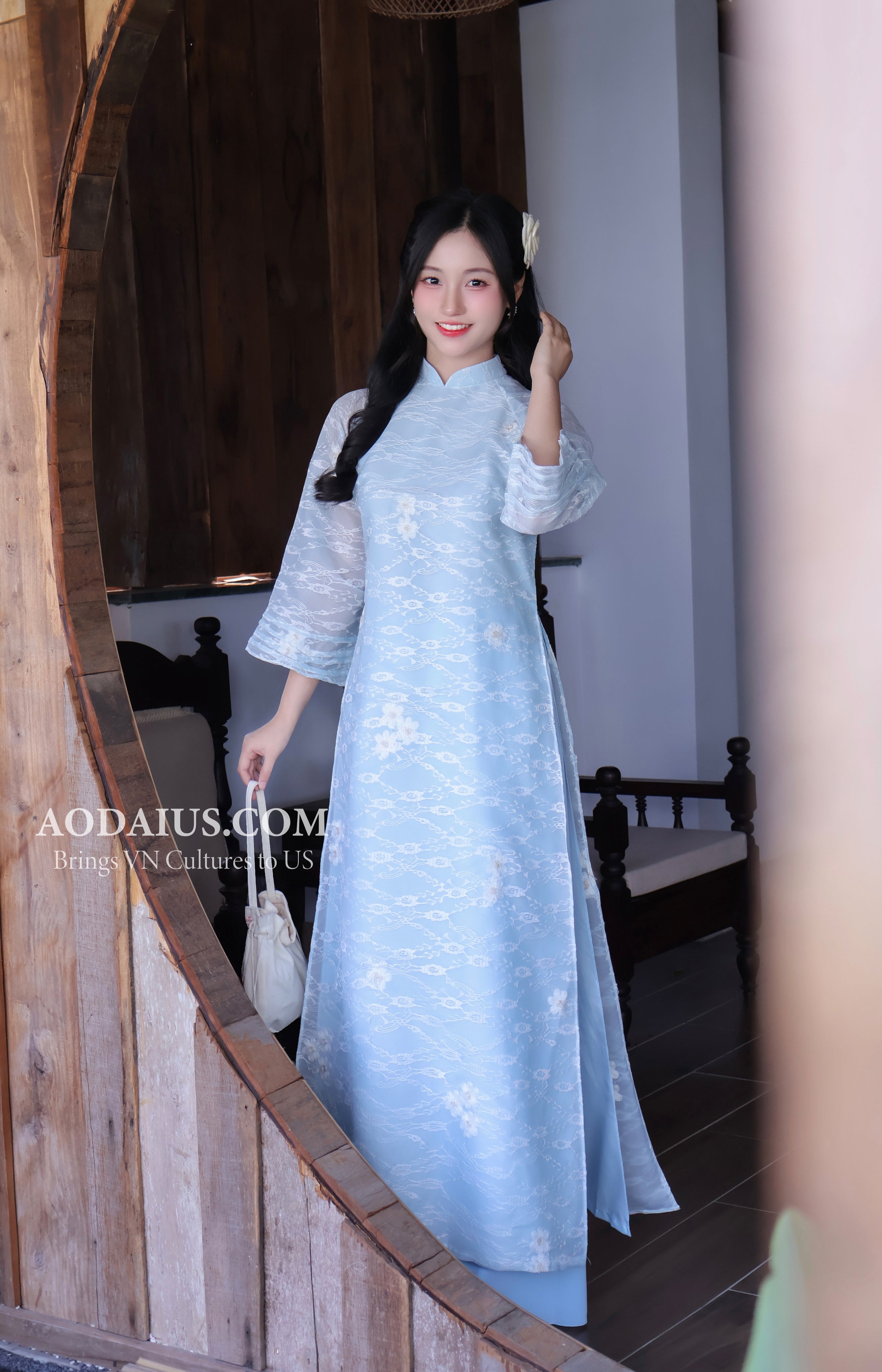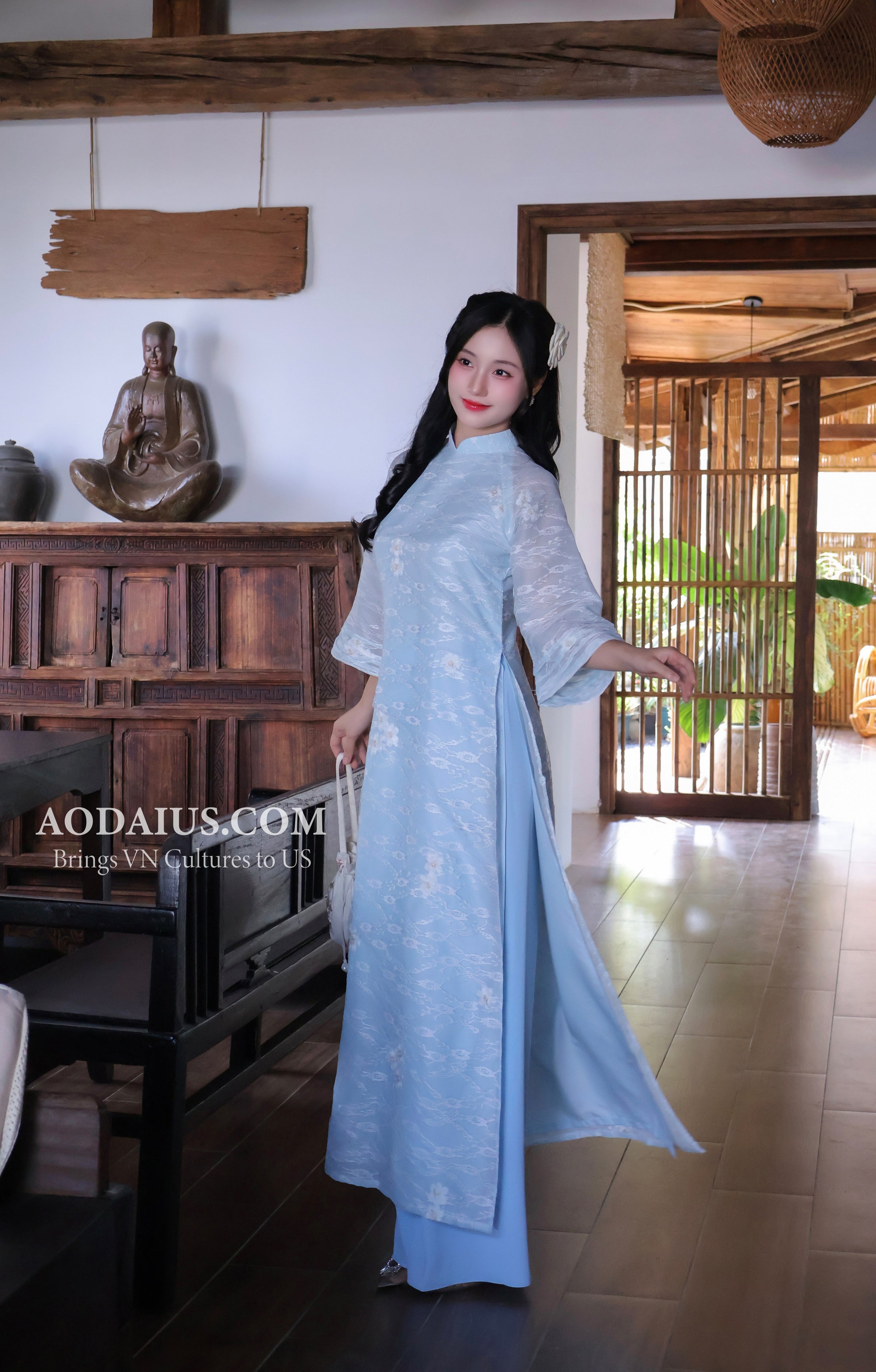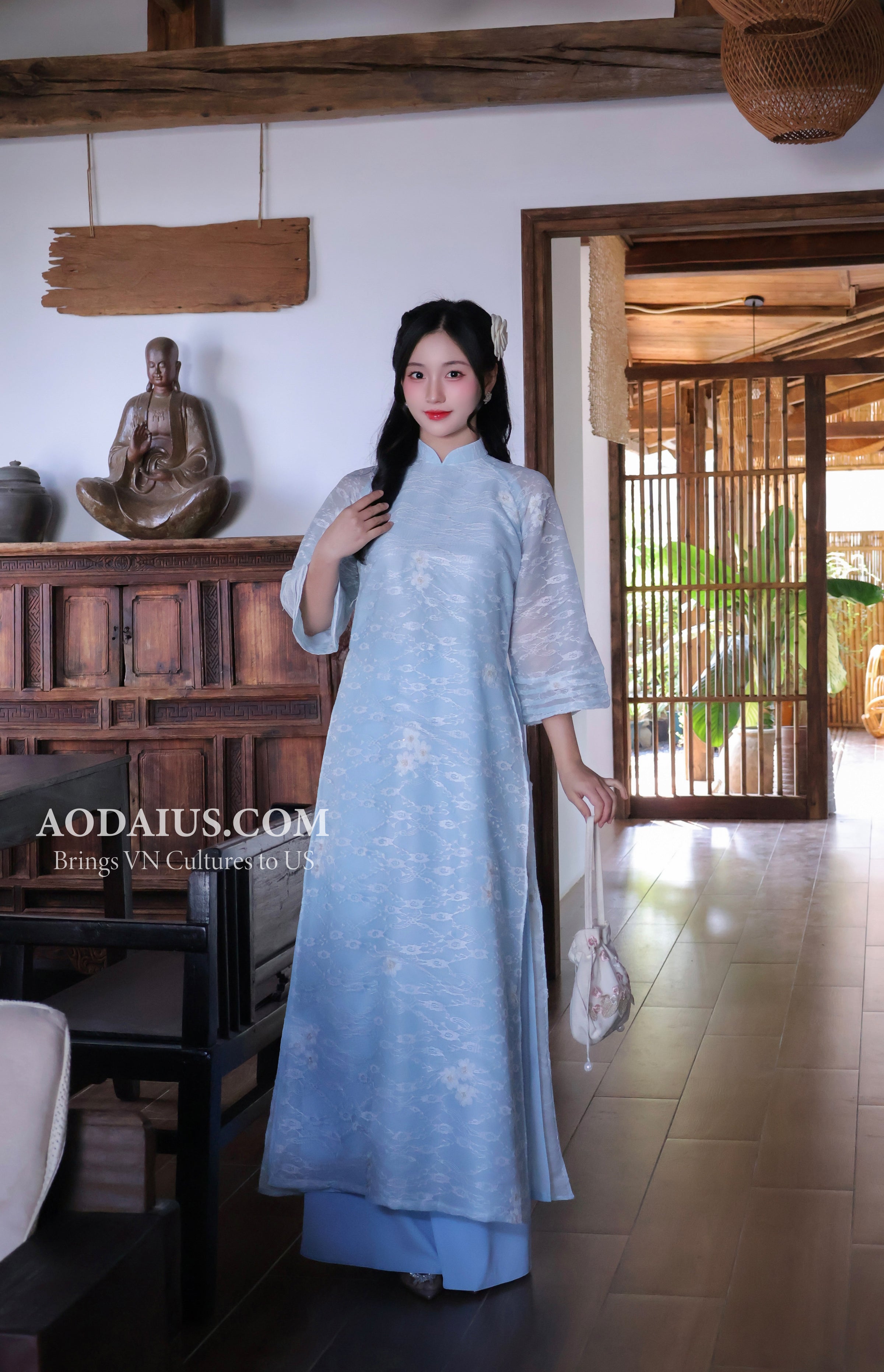 Blue Floral Vietnamese Ao Dai Dress Set | Áo Dài Cách Tân 260
