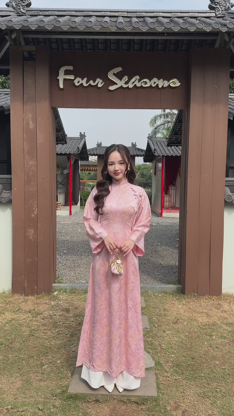 Pink Floral Blossom Bow Vietnamese Áo Dài Top No Pants