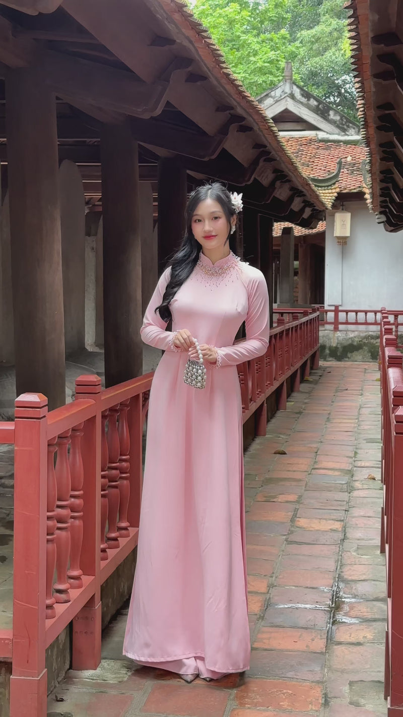 Pink Crystal Vietnamese Traditional Ao Dai O27