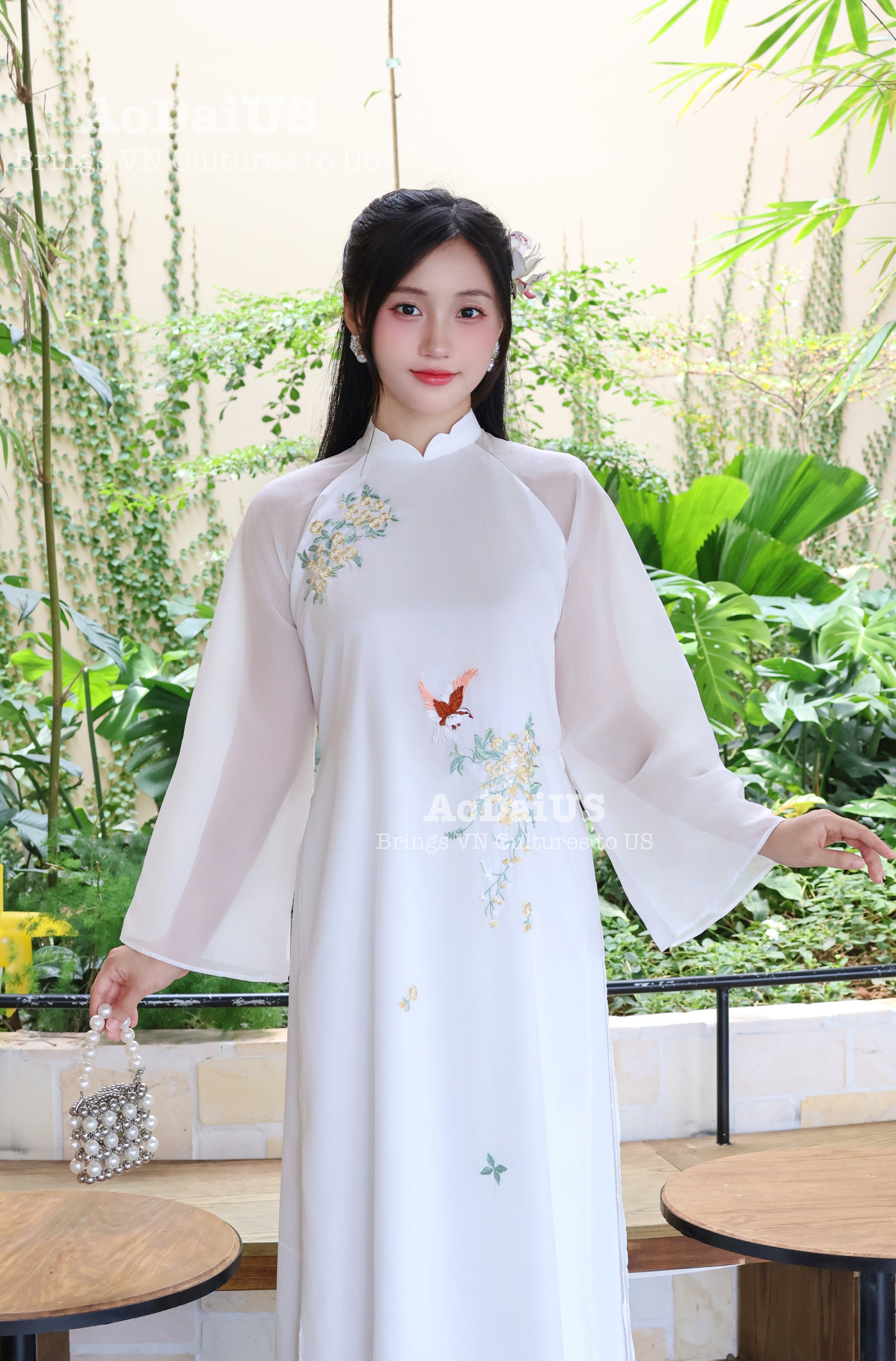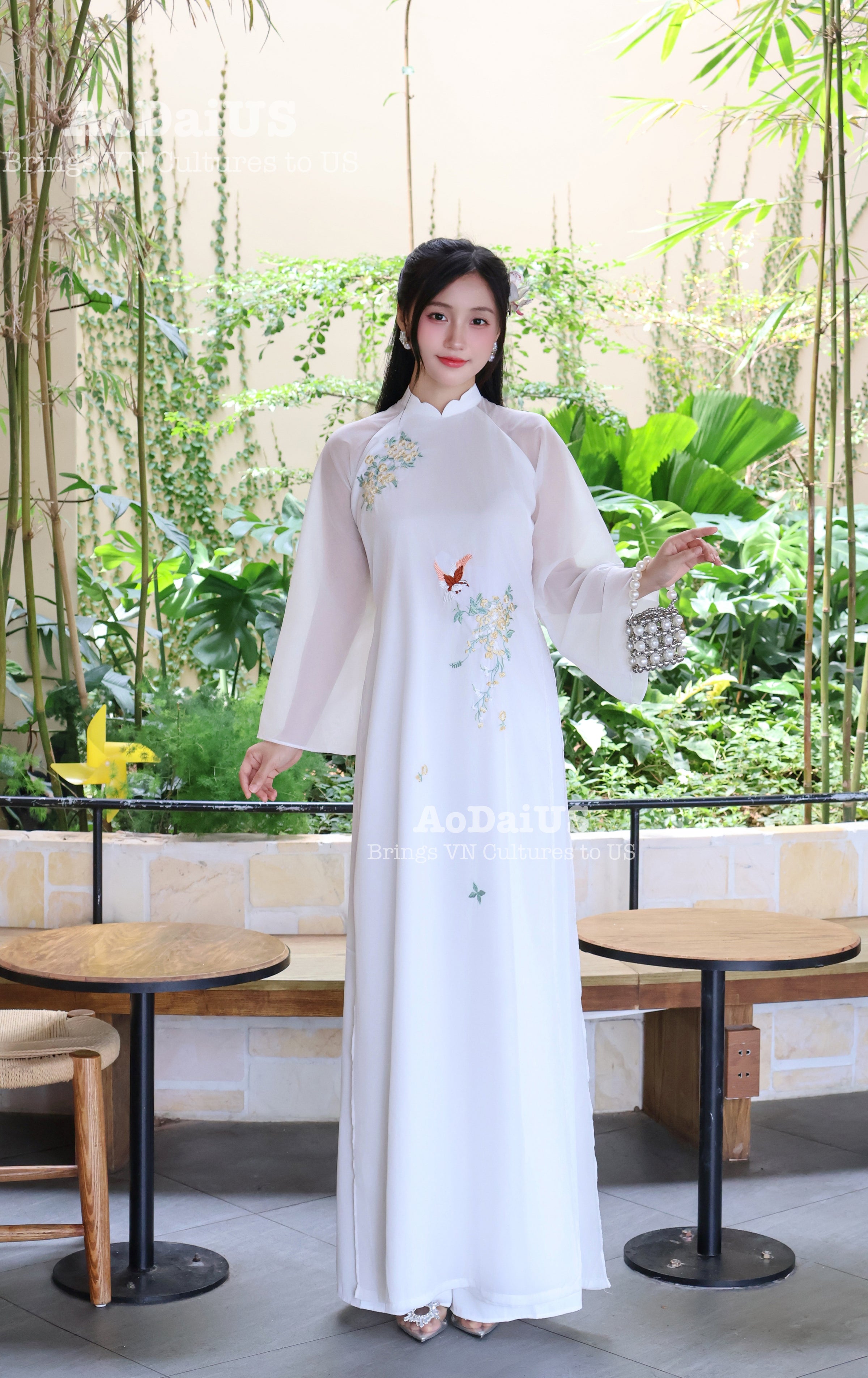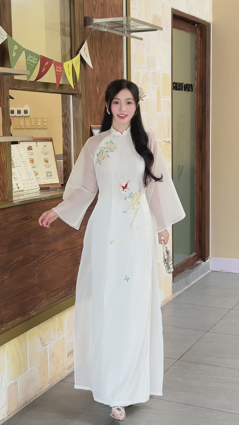 Radiating purity and grace, our “White Serenity” Áo Dài combines traditional Vietnamese elegance with a modern, lightweight design. Crafted from premium two-layer chiffon, this dress drapes beautifully while maintaining modest coverage. The fabric is non-stretch, giving it a structured yet delicate silhouette that flatters every figure.