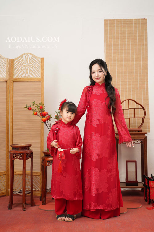 Youthful Floral Red Mother Daughter Matching Ao Dai | Family Áo Dài Set O5