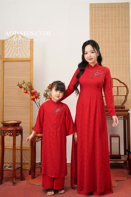 Lotus Crystal Mother Daughter Matching Áo Dài | Family Áo Dài Set O6