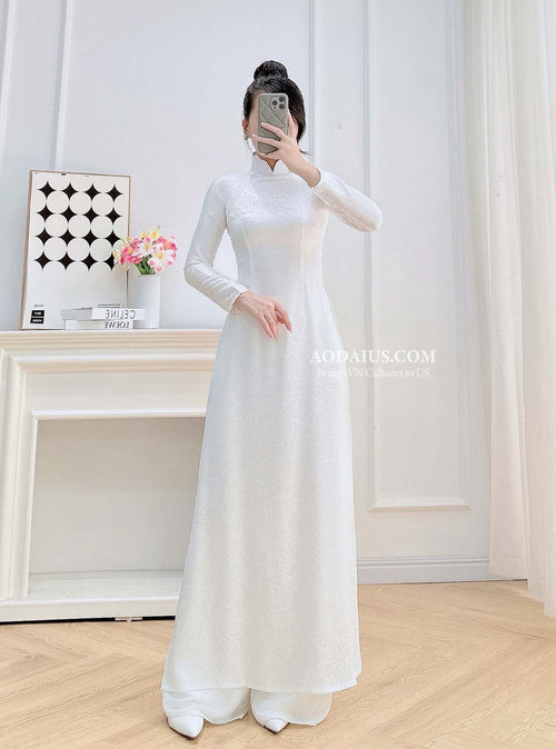 White Gam Silk Vietnamese Ao Dai No Pants | Áo Dài Trắng Truyền Thống N12