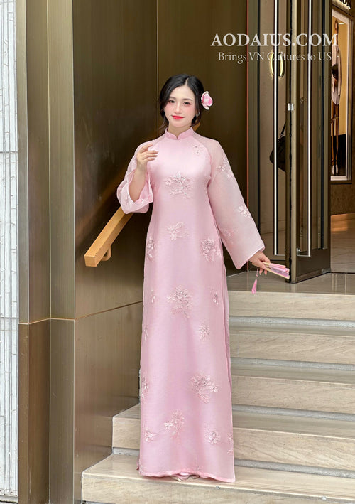 Pink Floral Whisper Vietnamese Modern Ao Dai Set N15