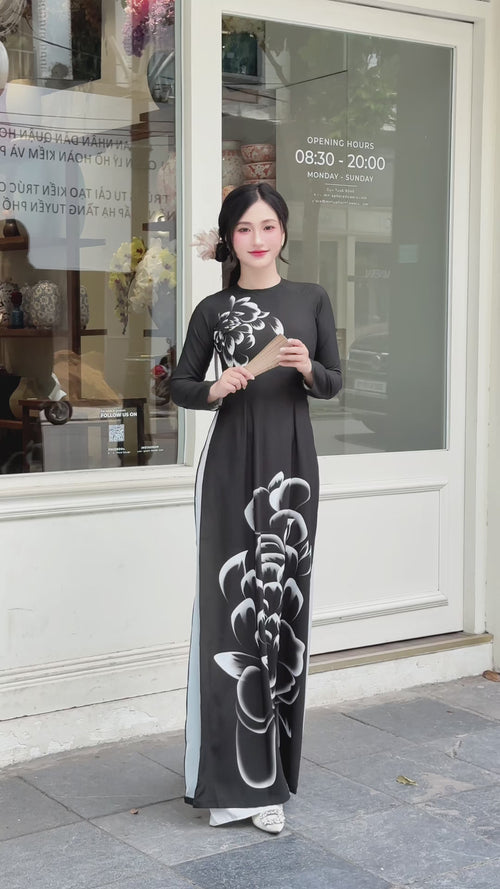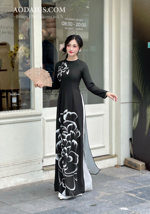 Black Daisy Elegance Vietnamese Traditional Ao Dai H14
