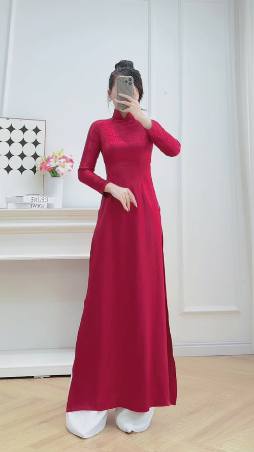 Dark Red Gam Silk Vietnamese Ao Dai No Pants | Áo Dài Truyền Thống N12