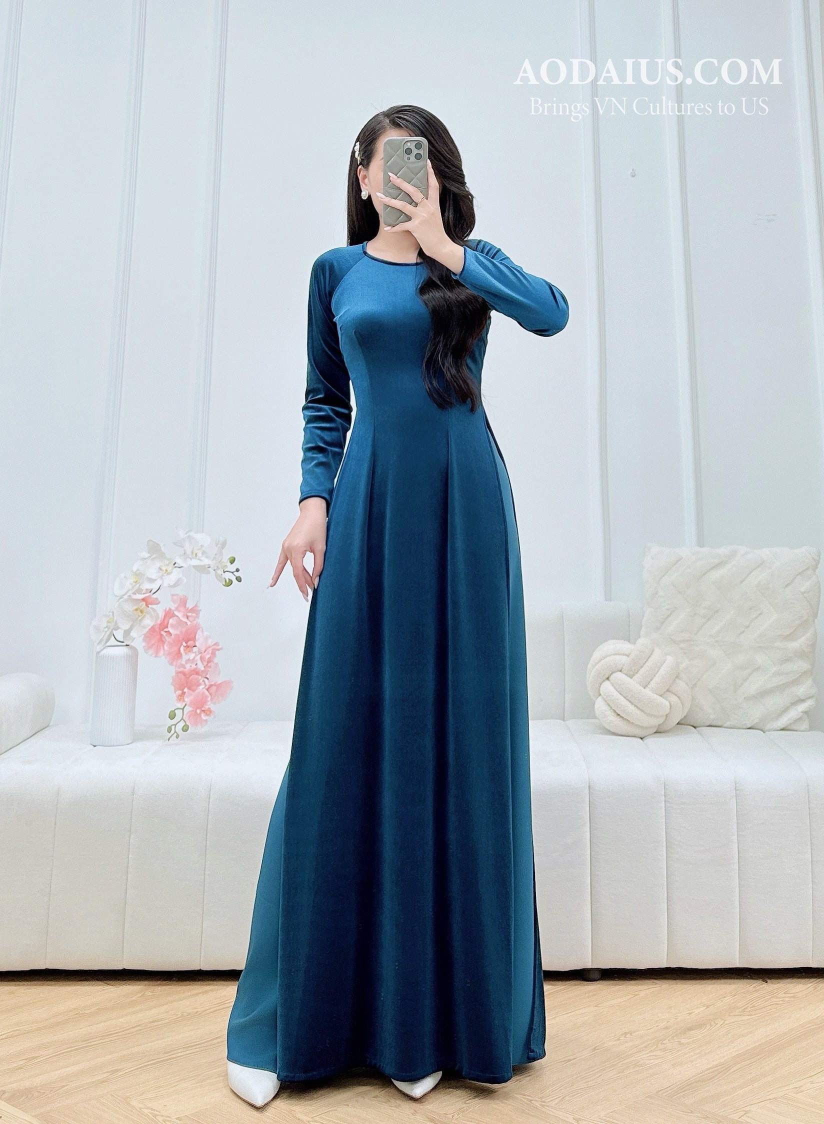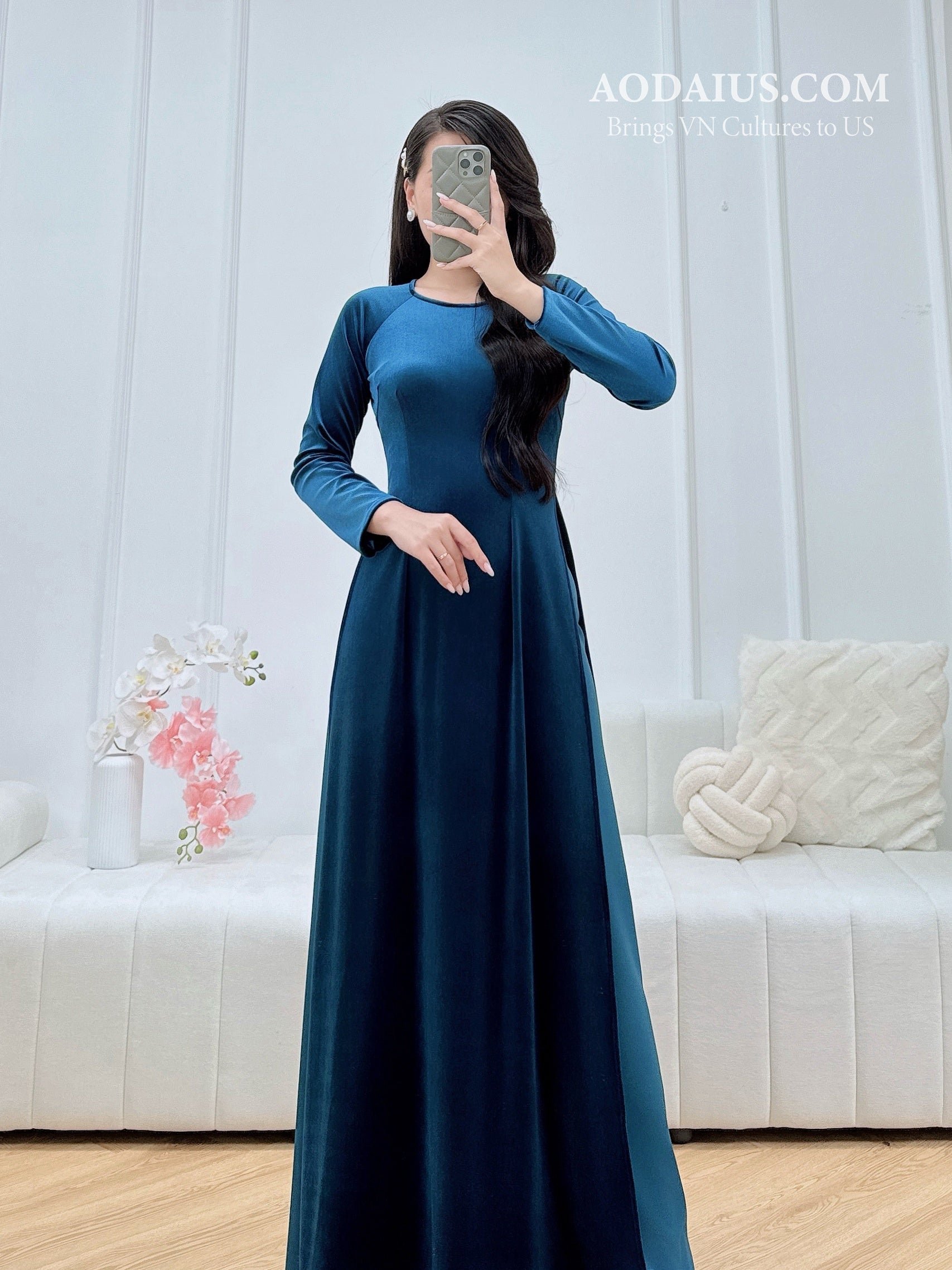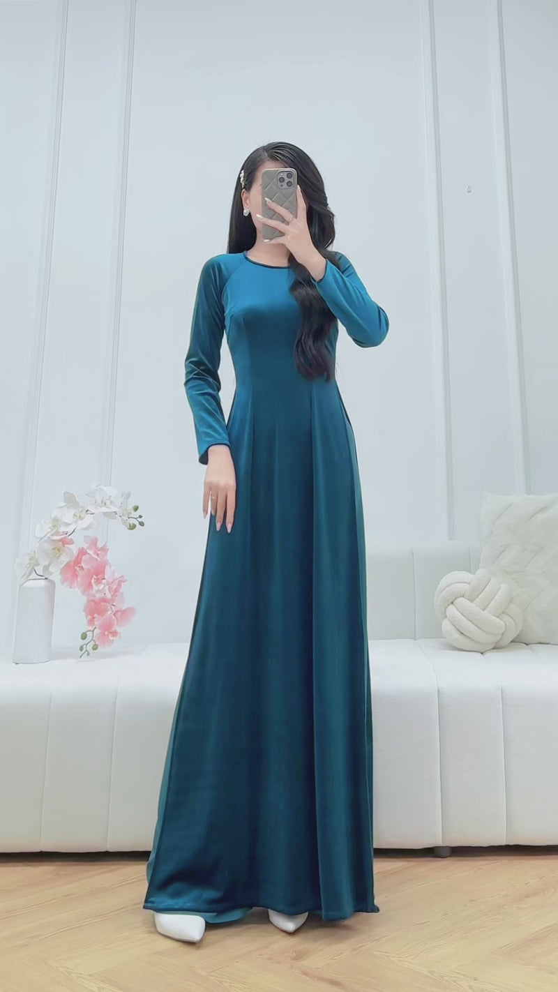 Blue Velvet Vietnamese Traditional Ao Dai Set | Áo Dài Truyền Thống O27