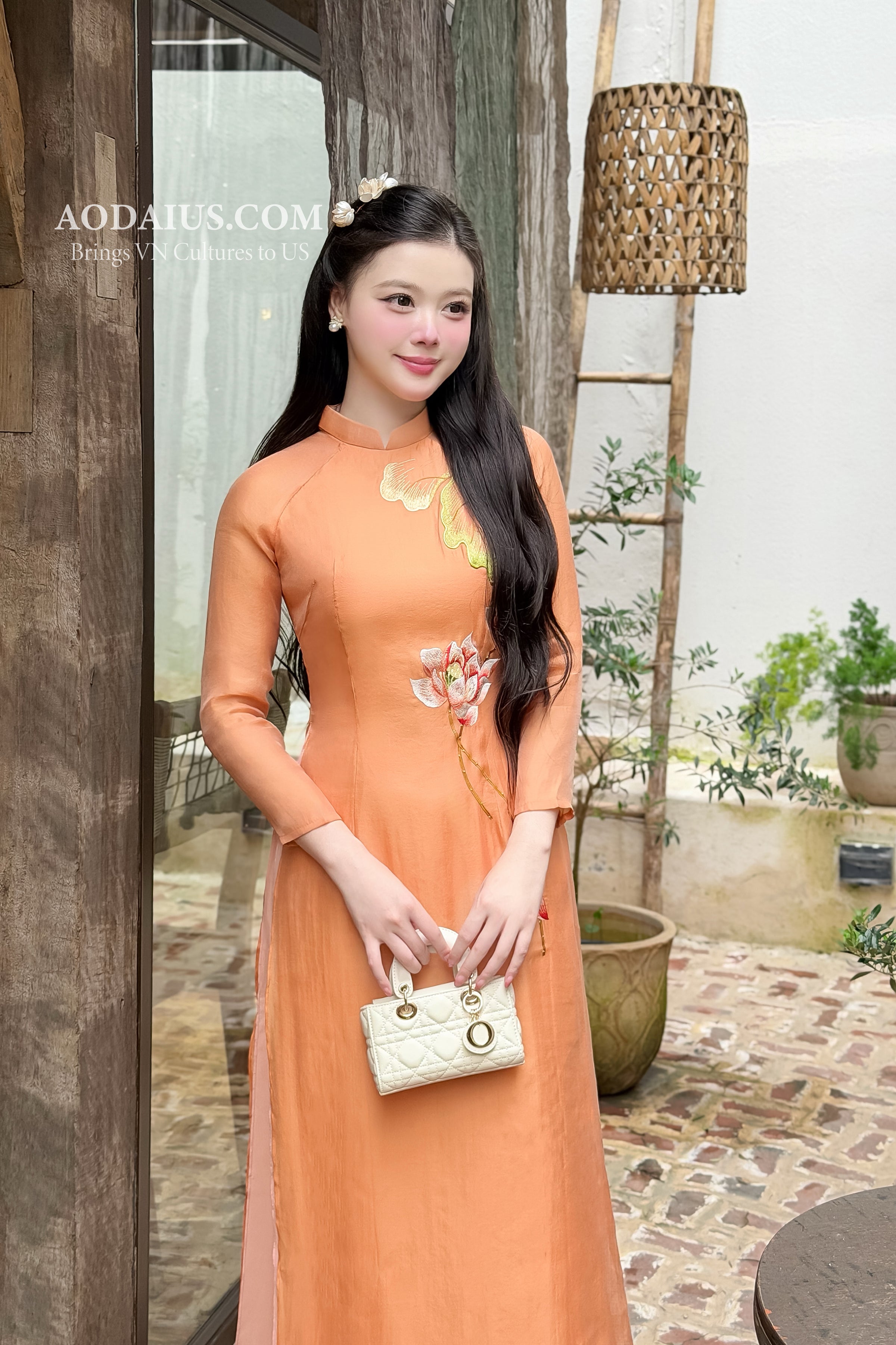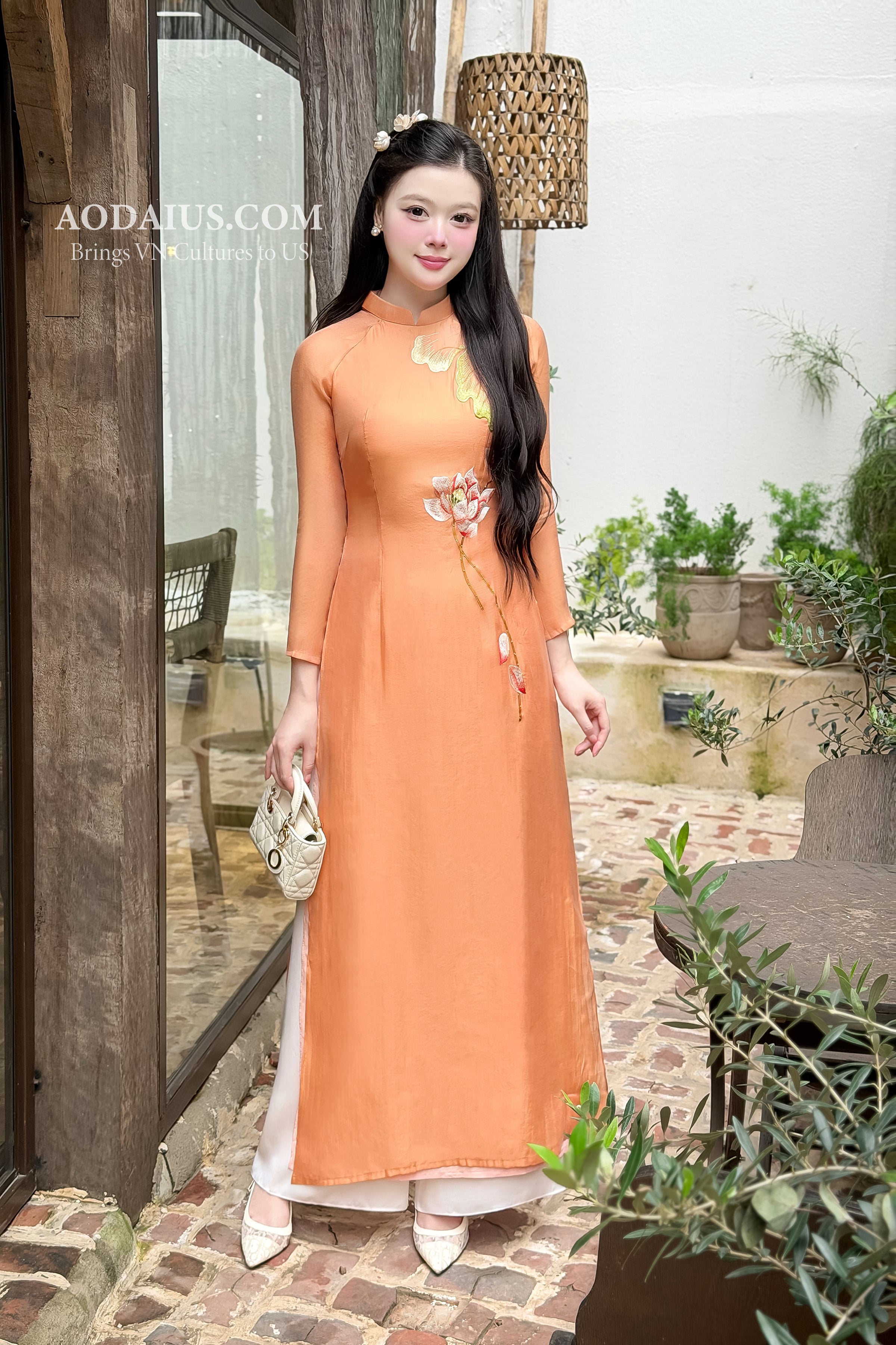 Lotus Embroidered Vietnamese Ao Dai Top B3