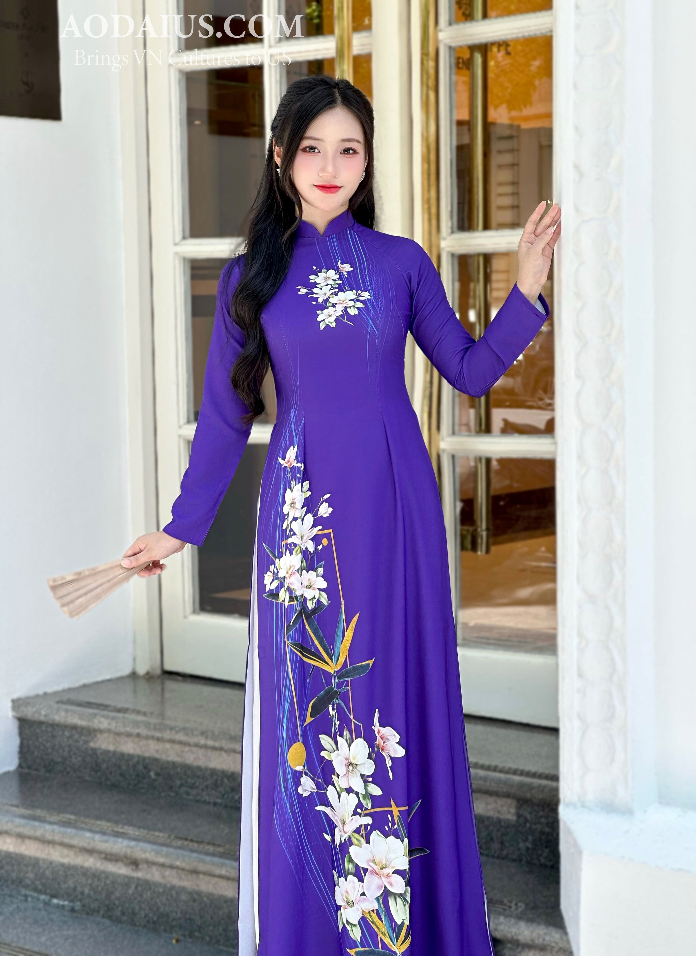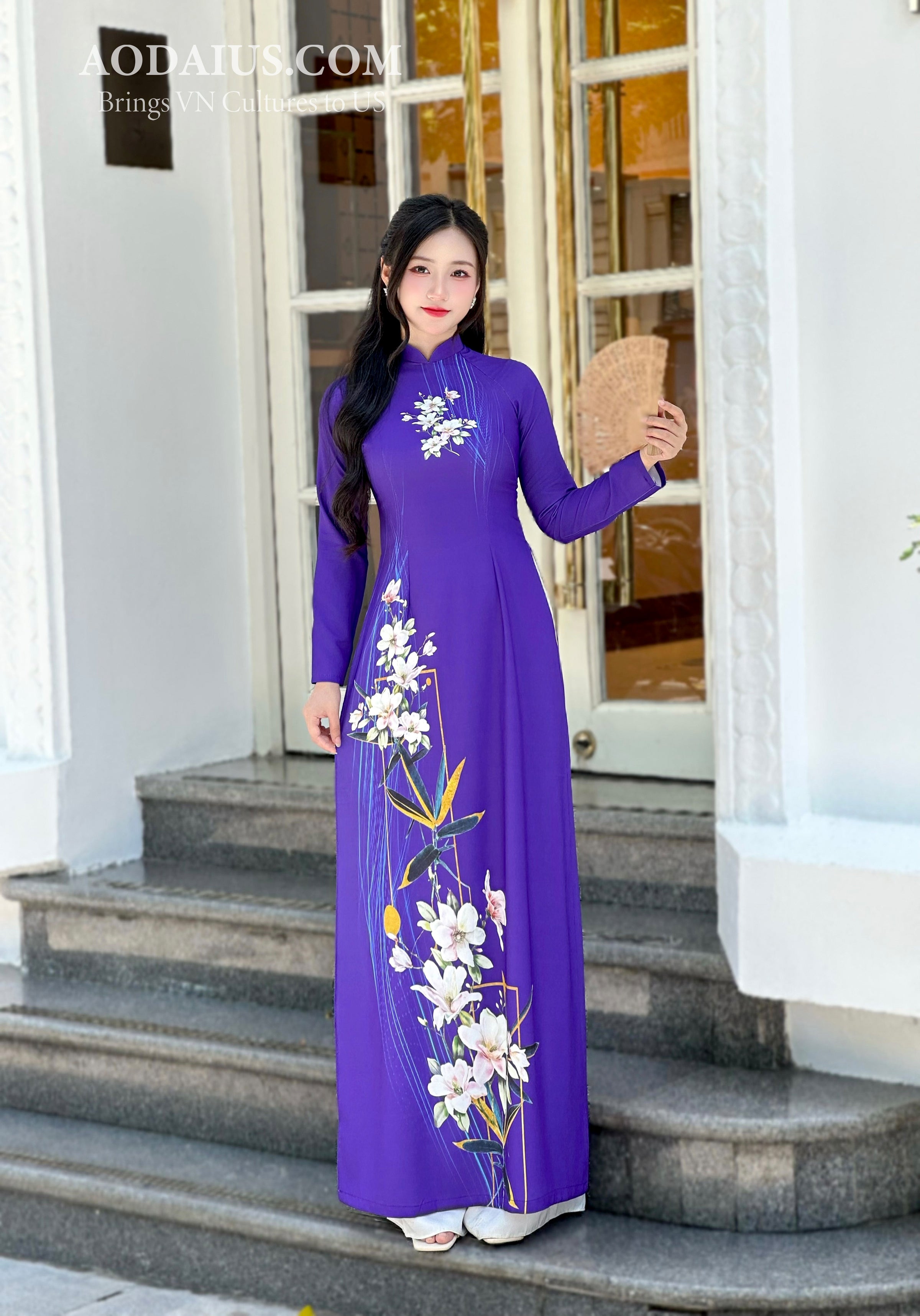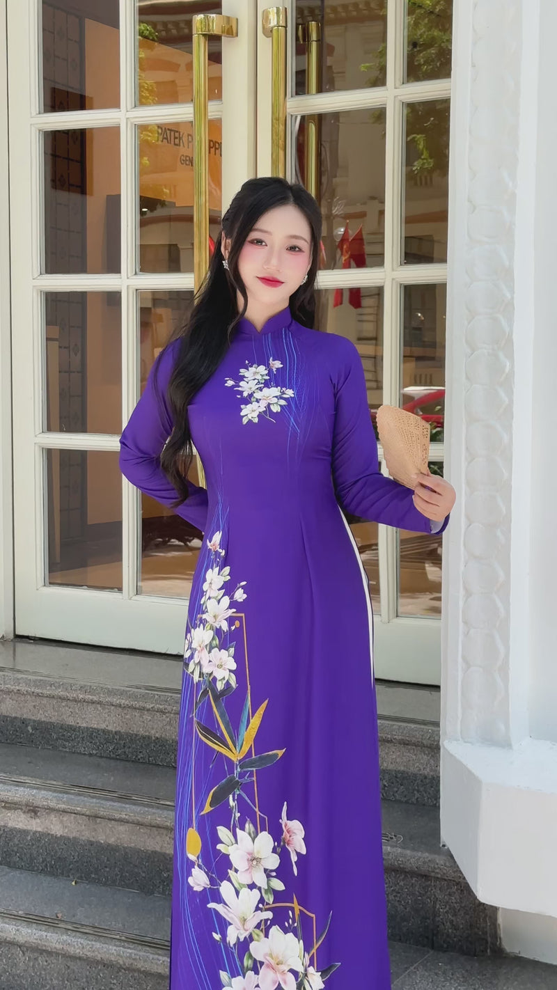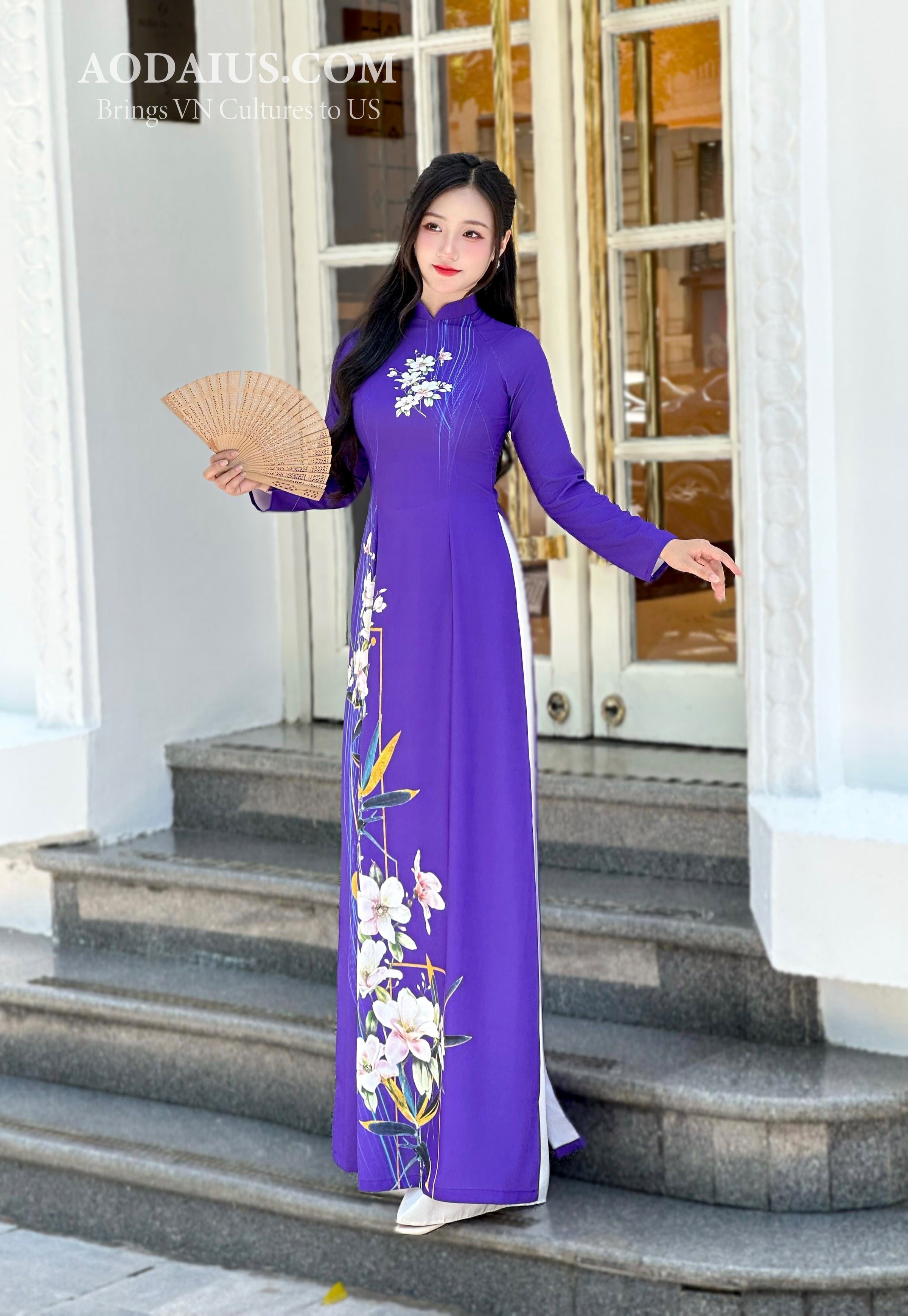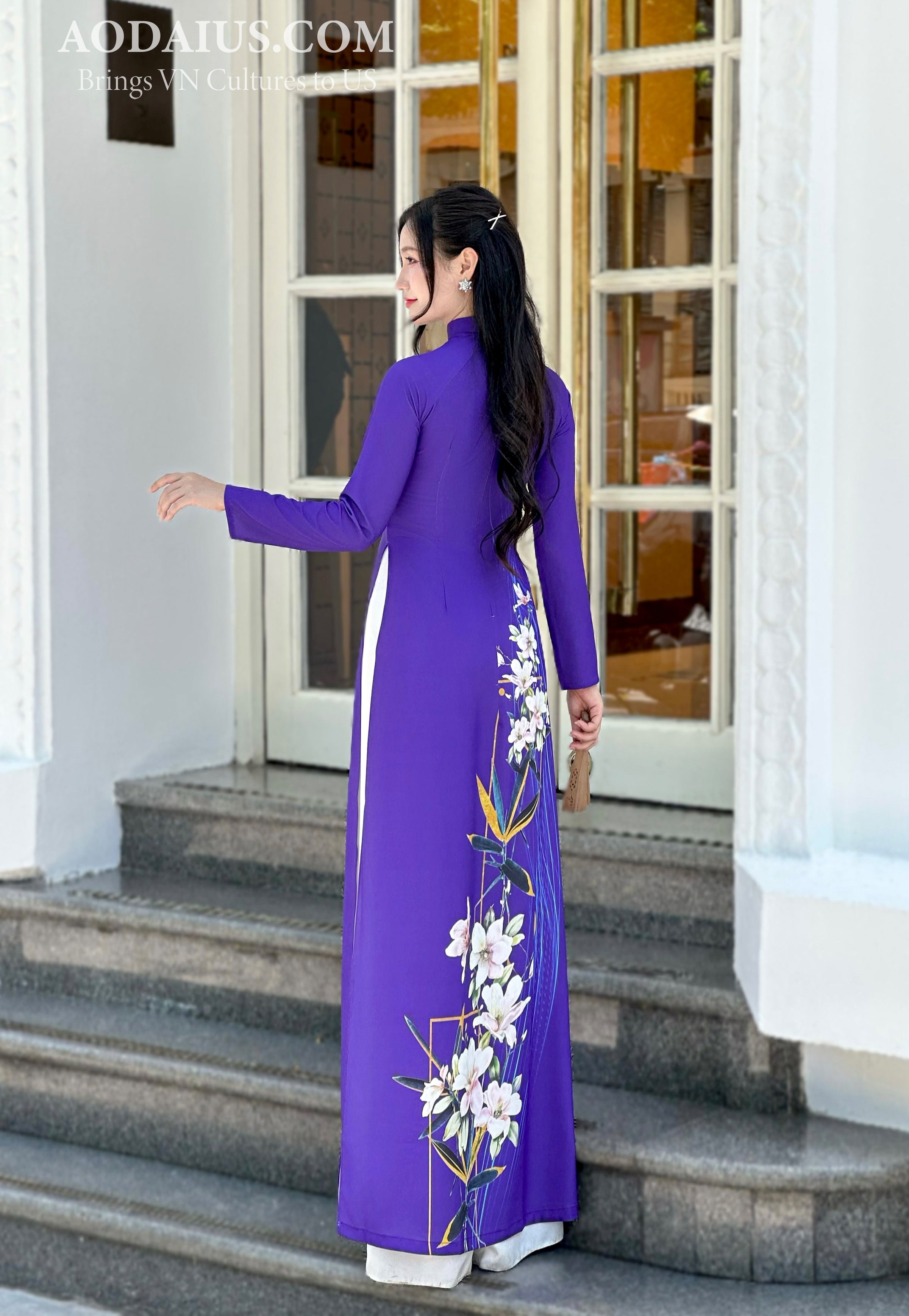 Bring a graceful spring vibe to your celebration with this Purple Floral Vietnamese Áo Dài.