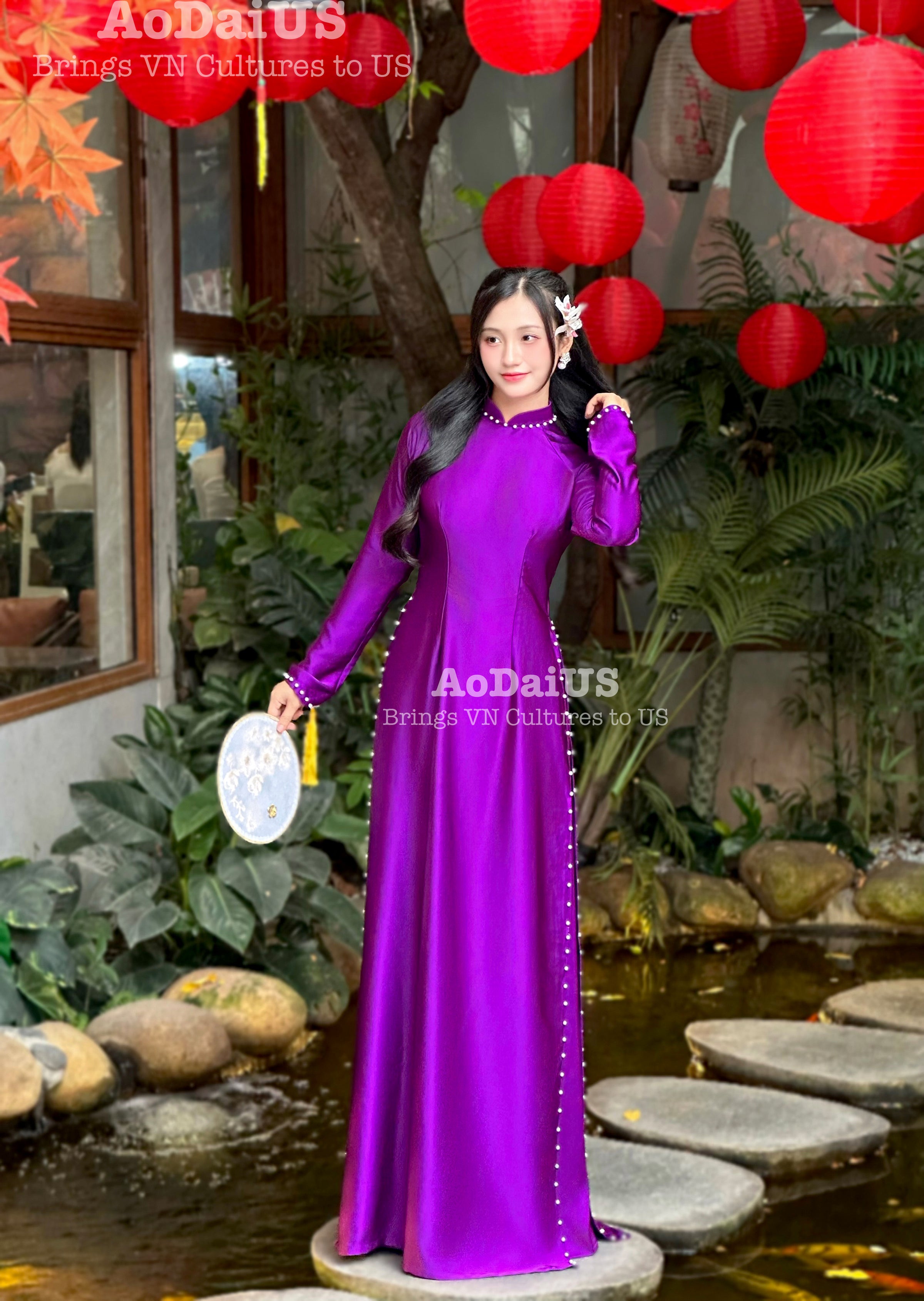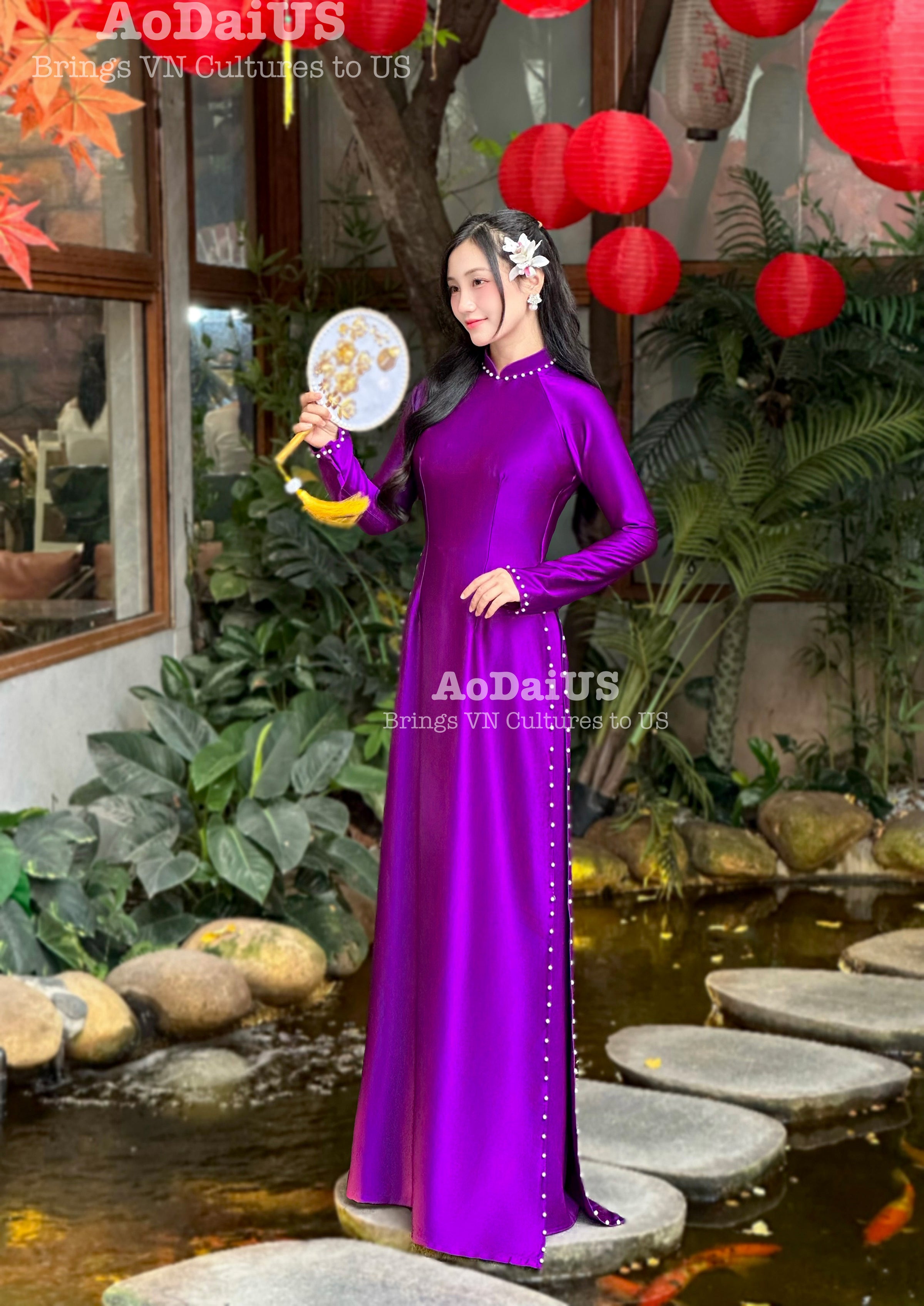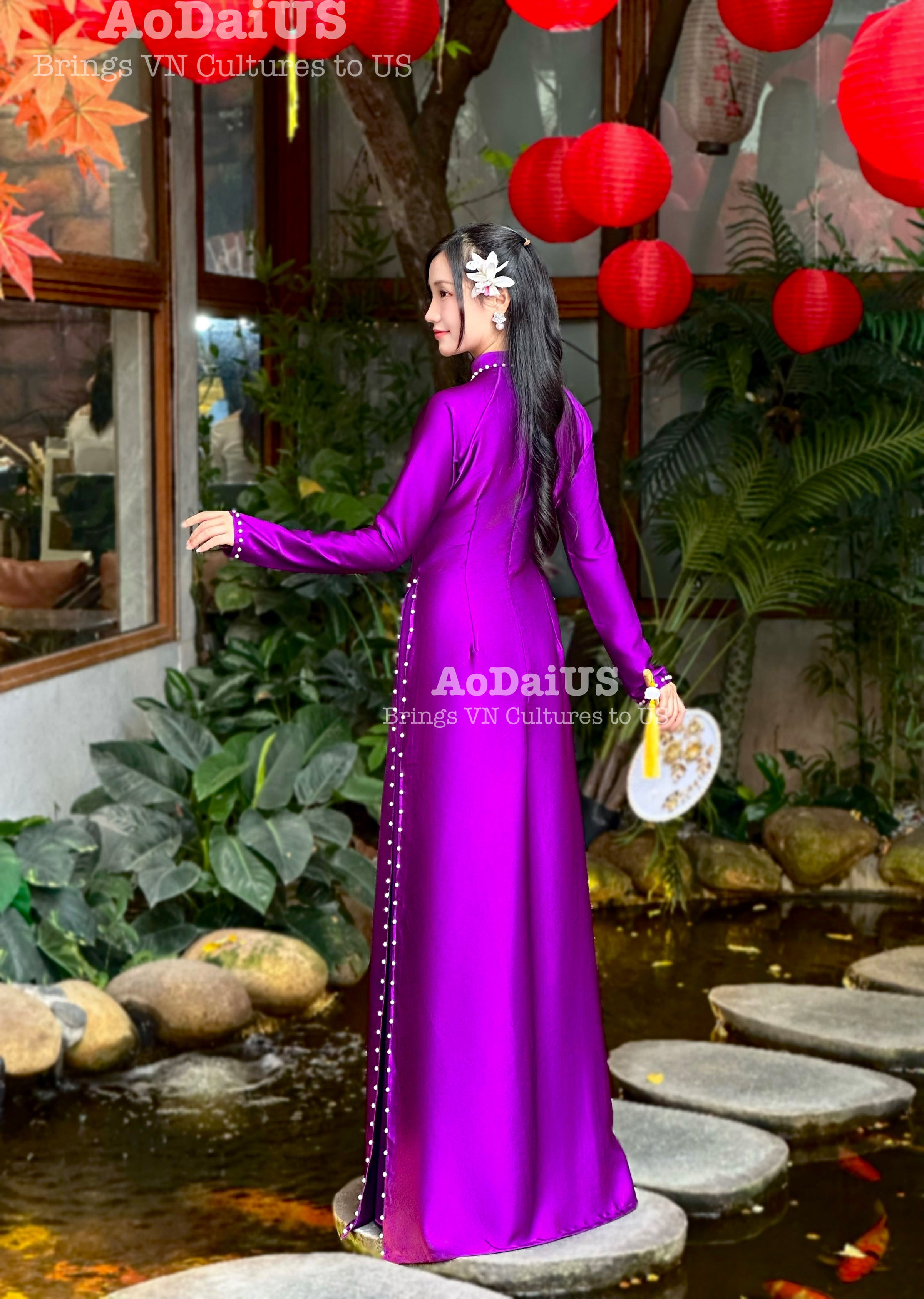 Purple Plain Valentino Vietnamese Ao Dai with Pearls Set E1