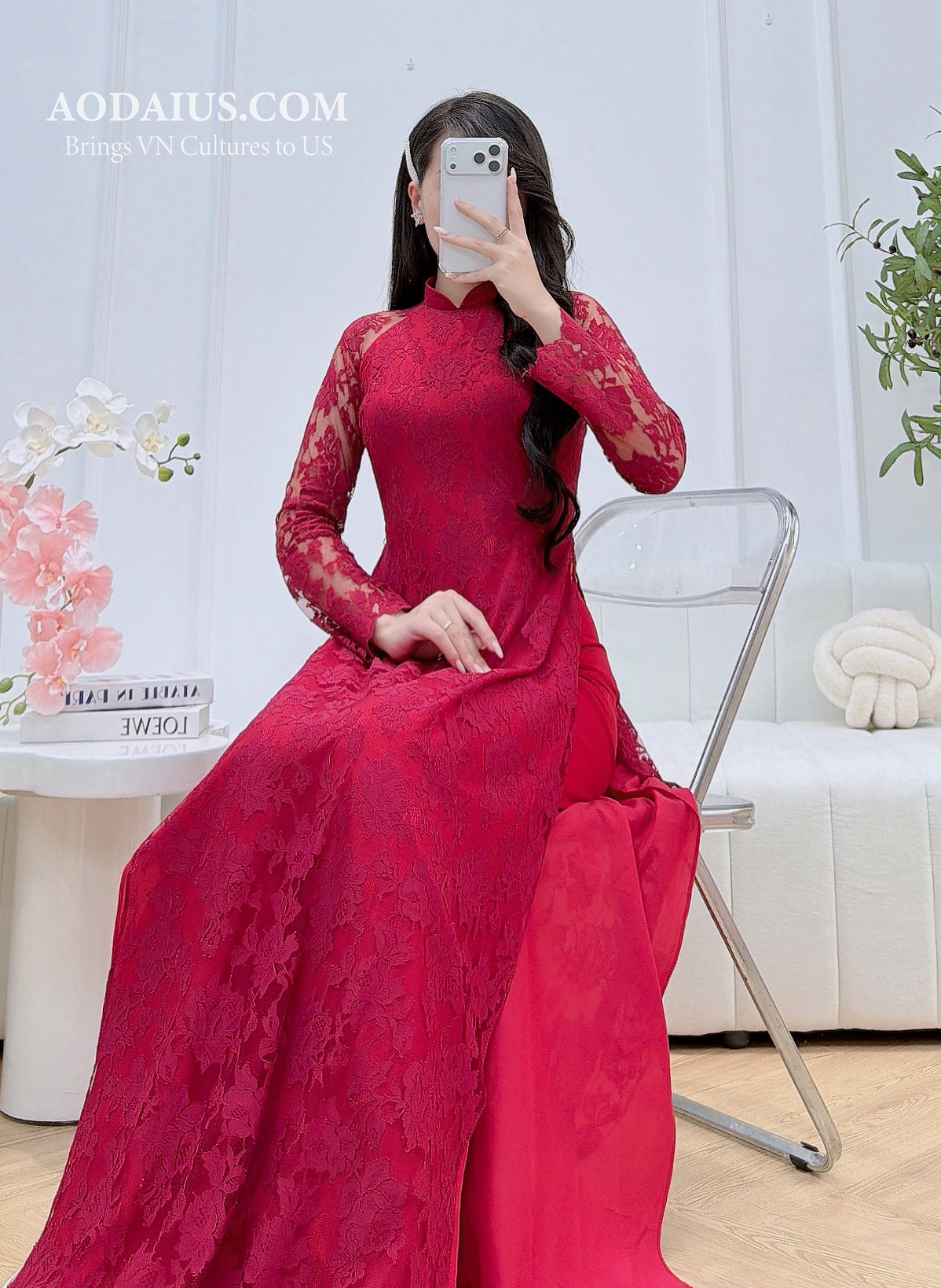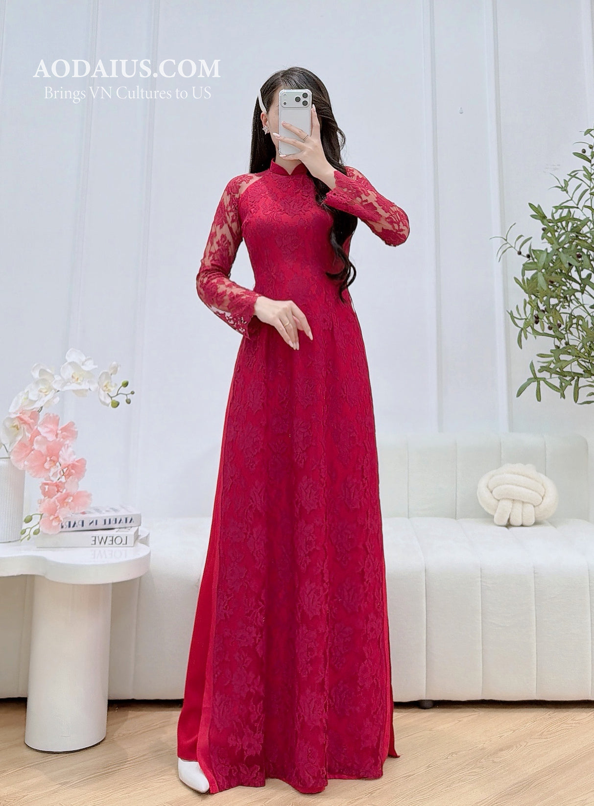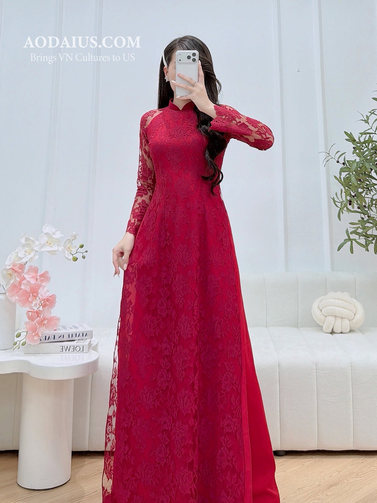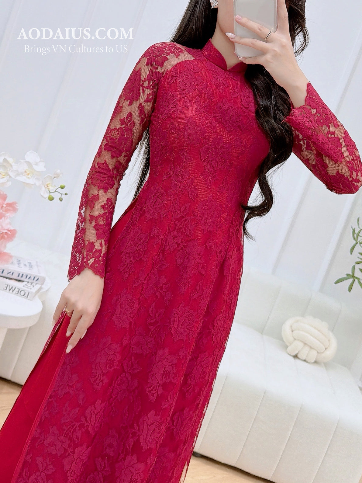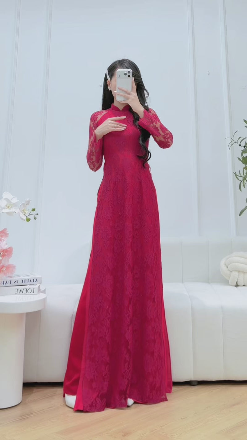 Red Rose Lace Vietnamese Ao Dai
