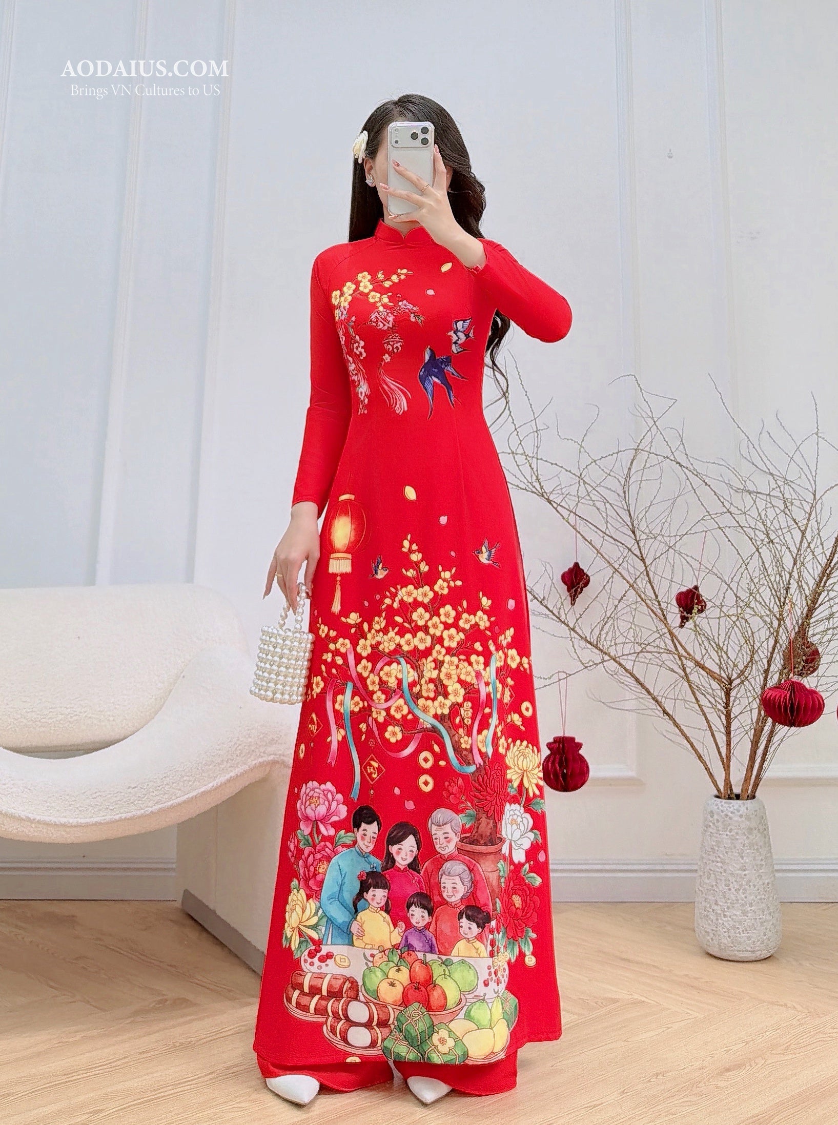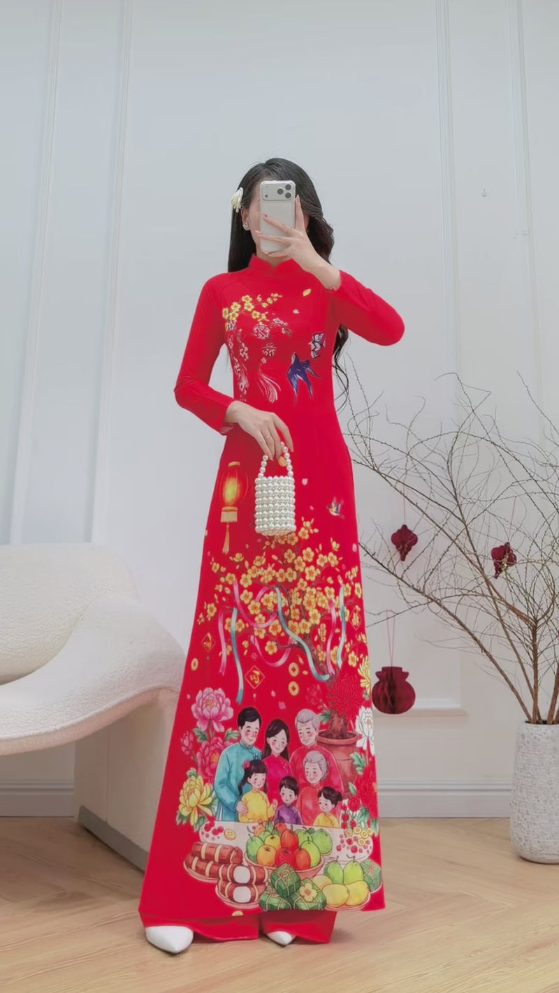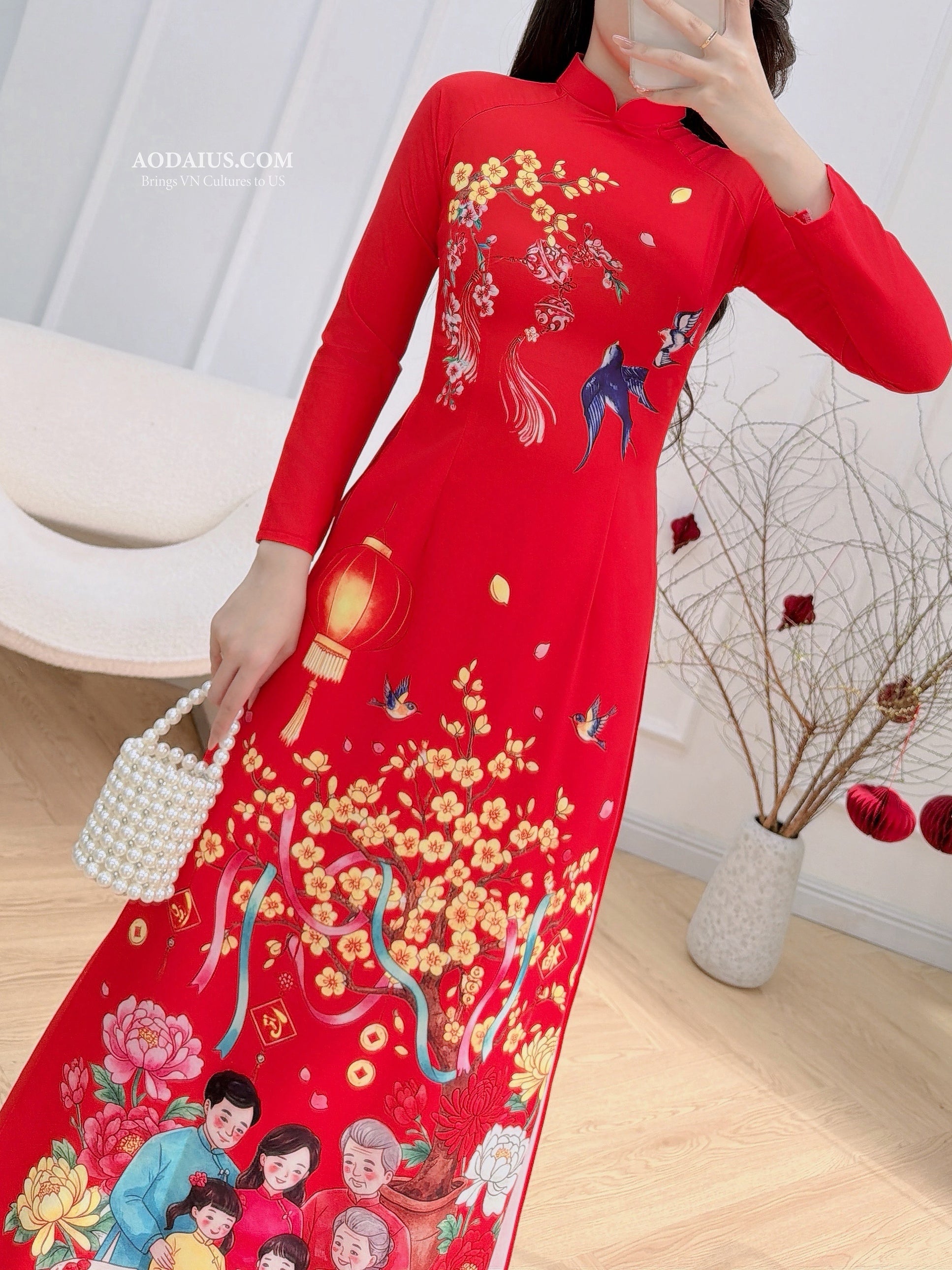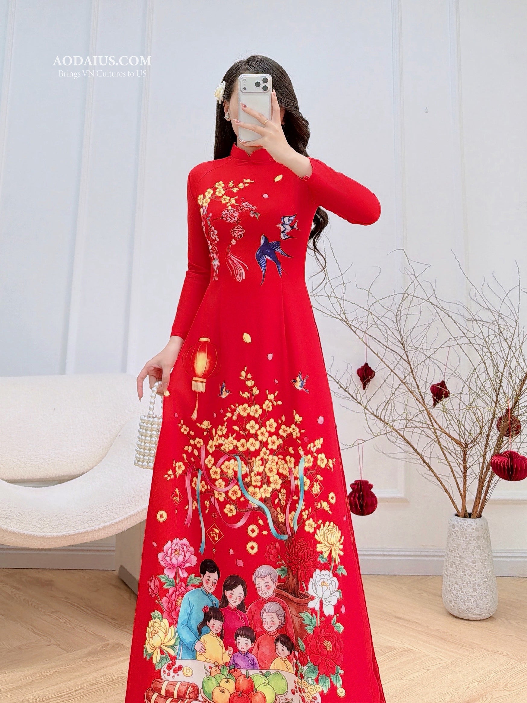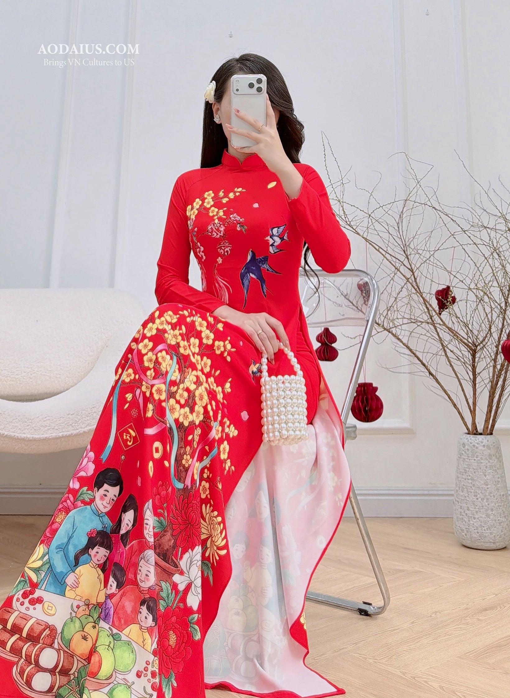 Red Tết Ao Dai Top (No Pants) | Vietnamese Traditional Dress N24