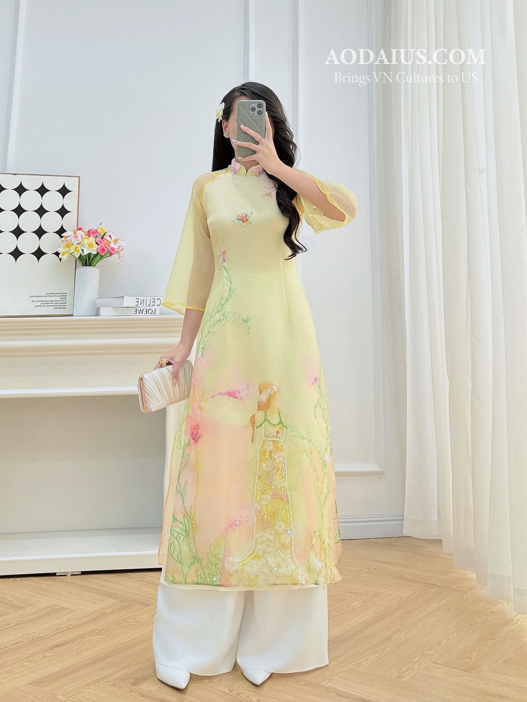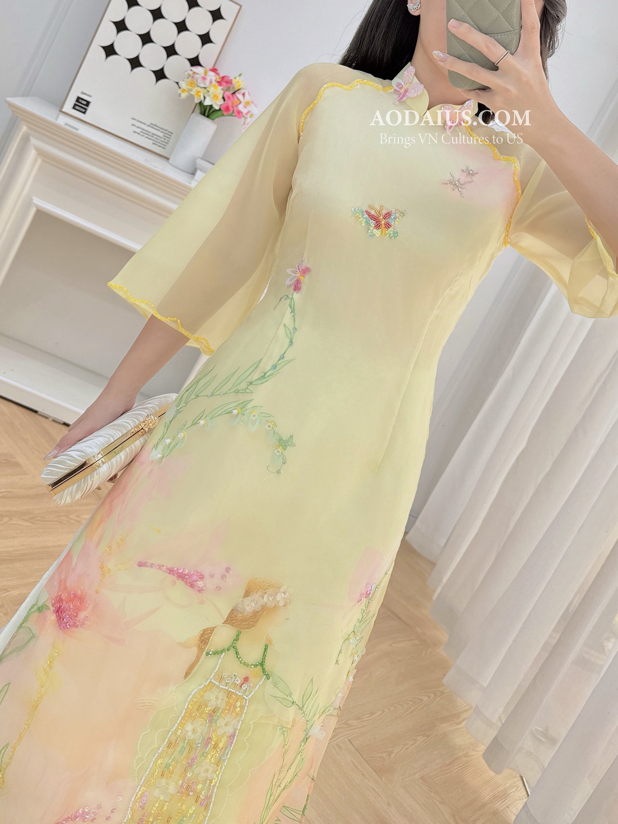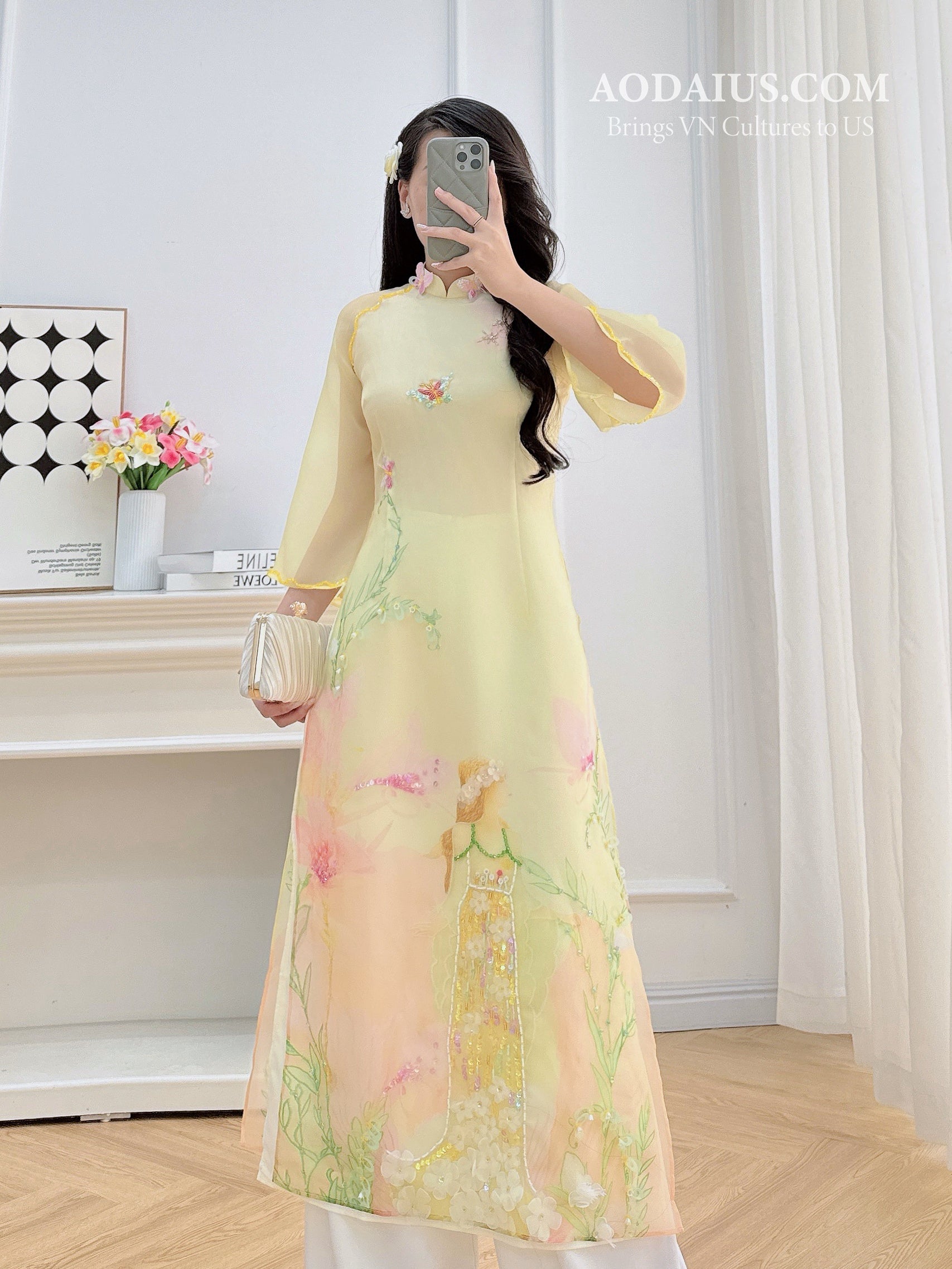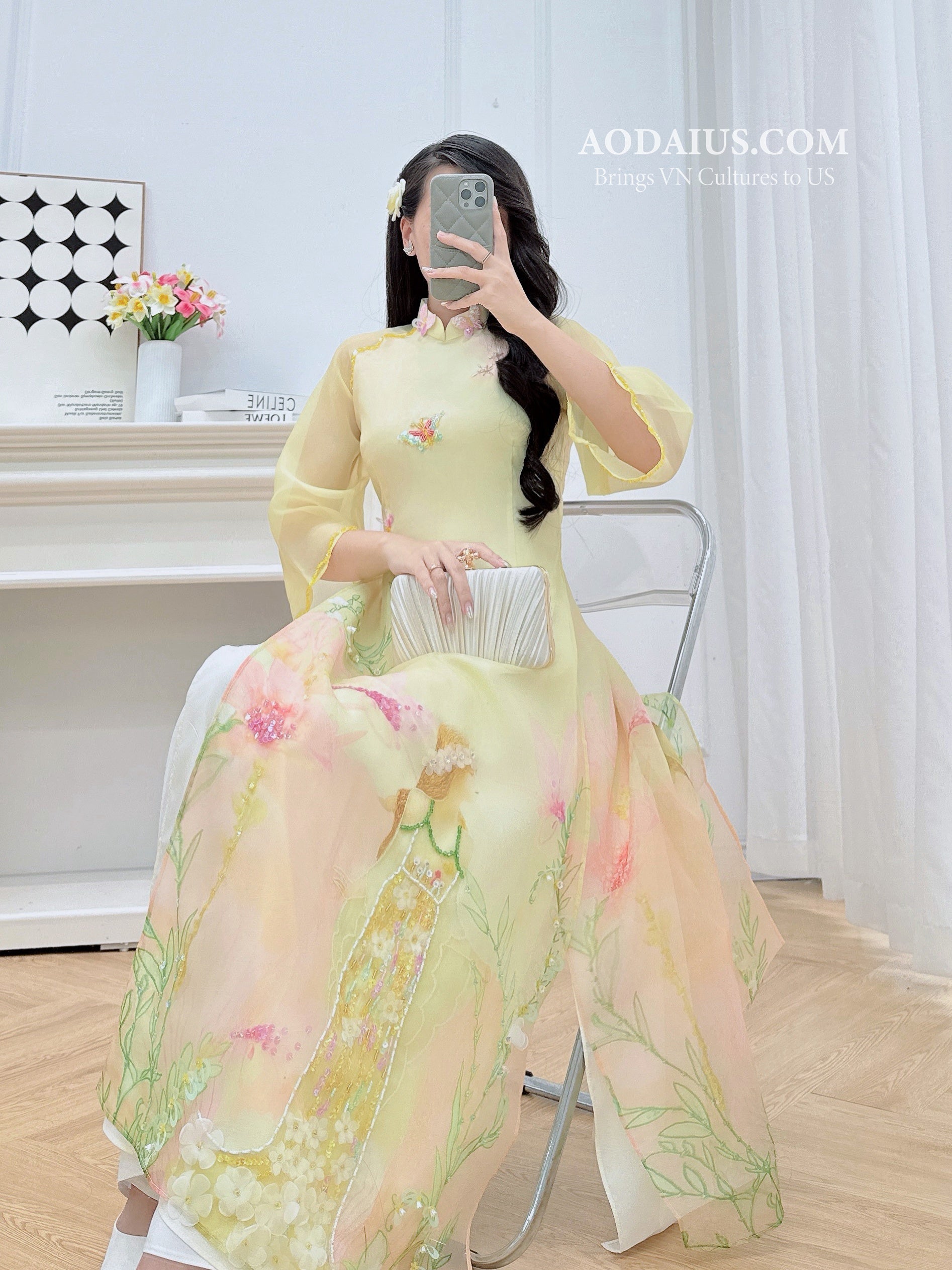 Sunny Fairy Garden Vietnamese Modern Ao Dai No Pants | Áo Dài Cách Tân O16