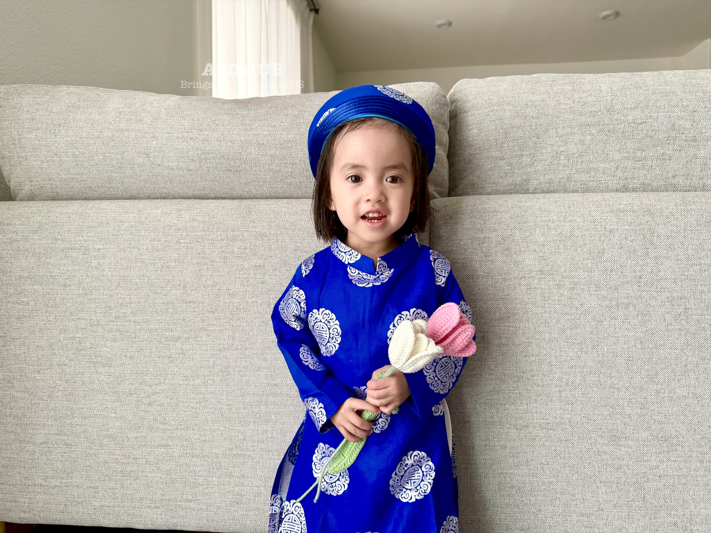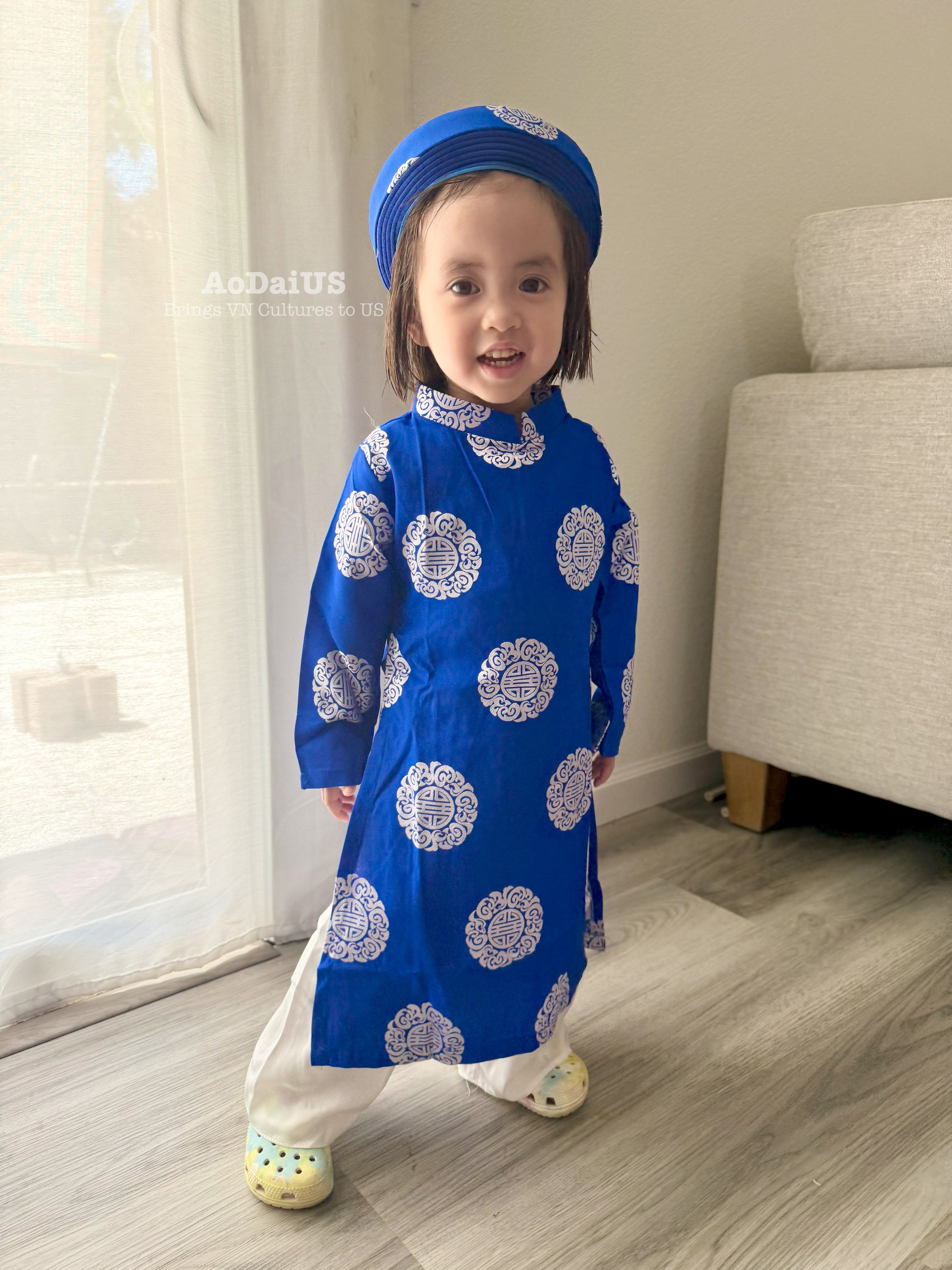 Gam Thai Tuan Blue Kids Traditional Ao Dai Set A1