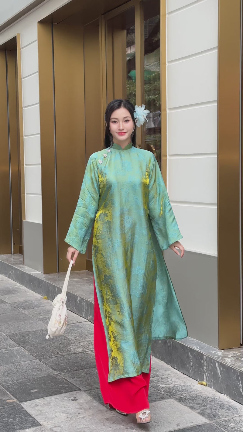 Green Floral Modern Ao Dai Set | Vietnamese Dress N18