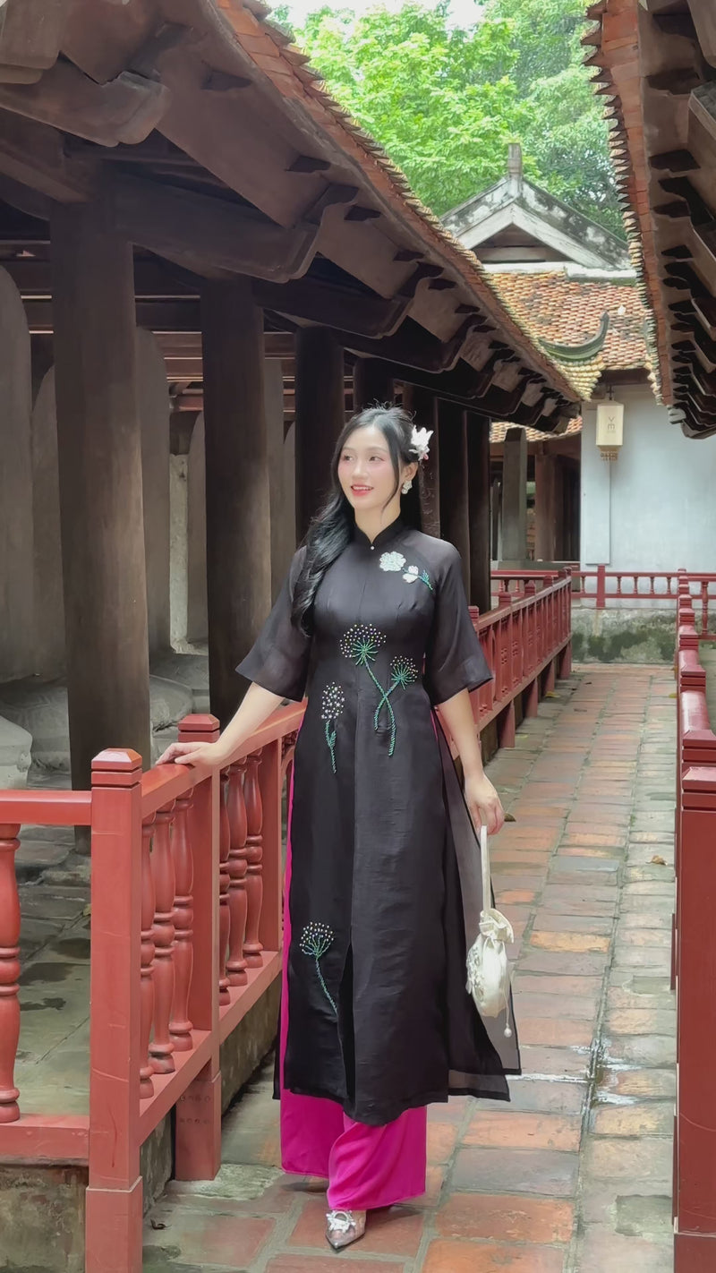 Midnight Dandelion Crystal Vietnamese Modern Ao Dai Set O2