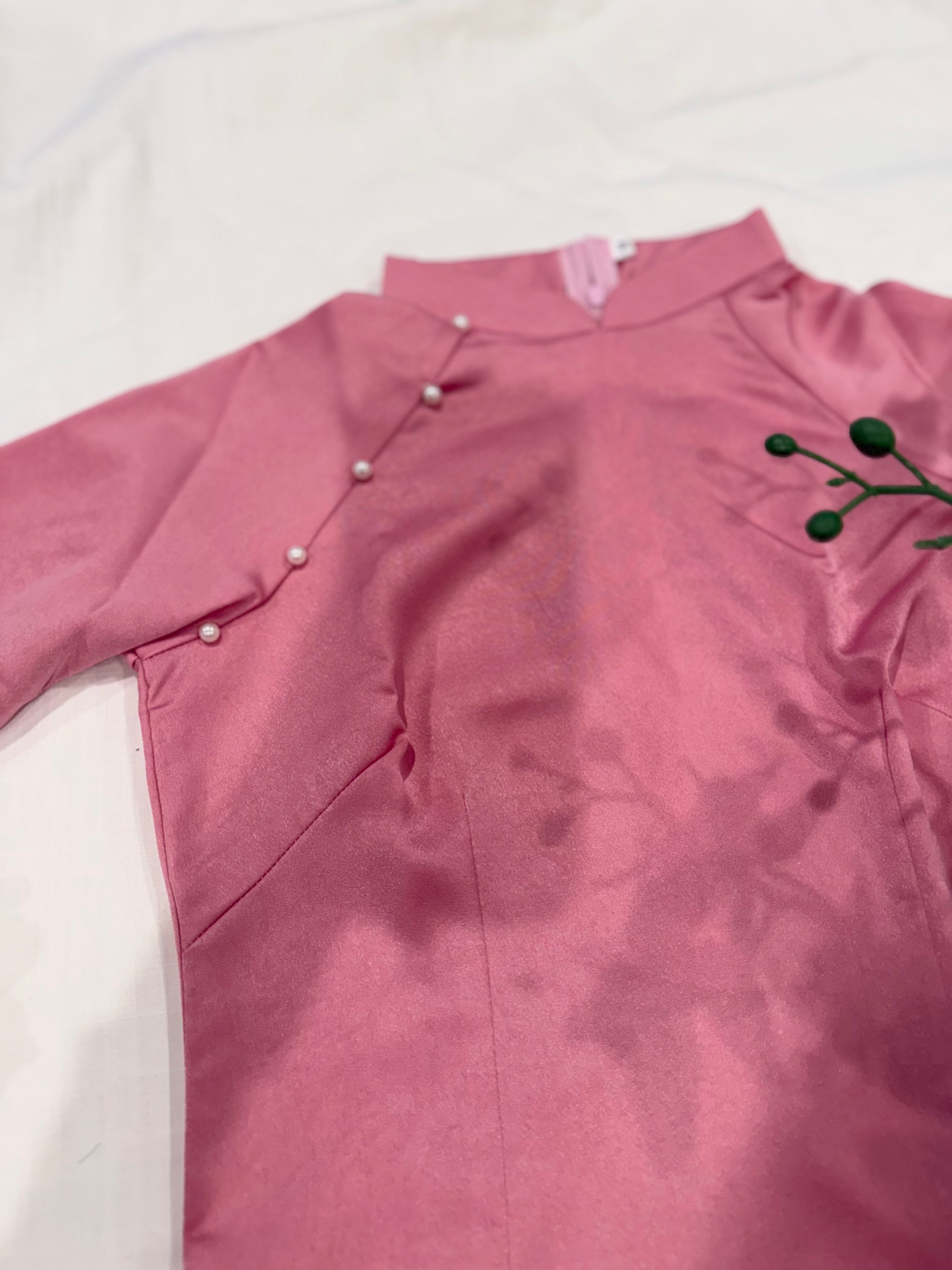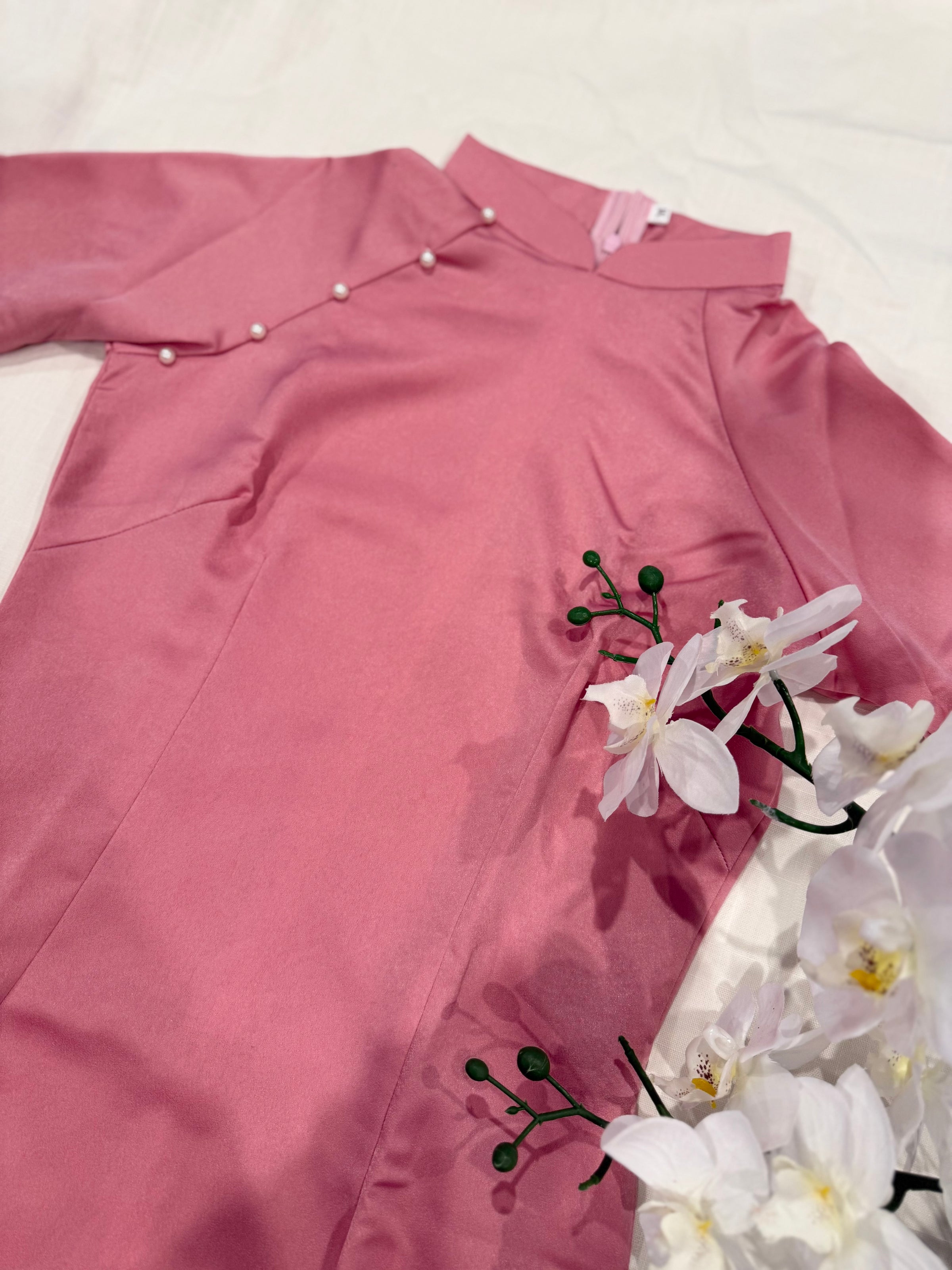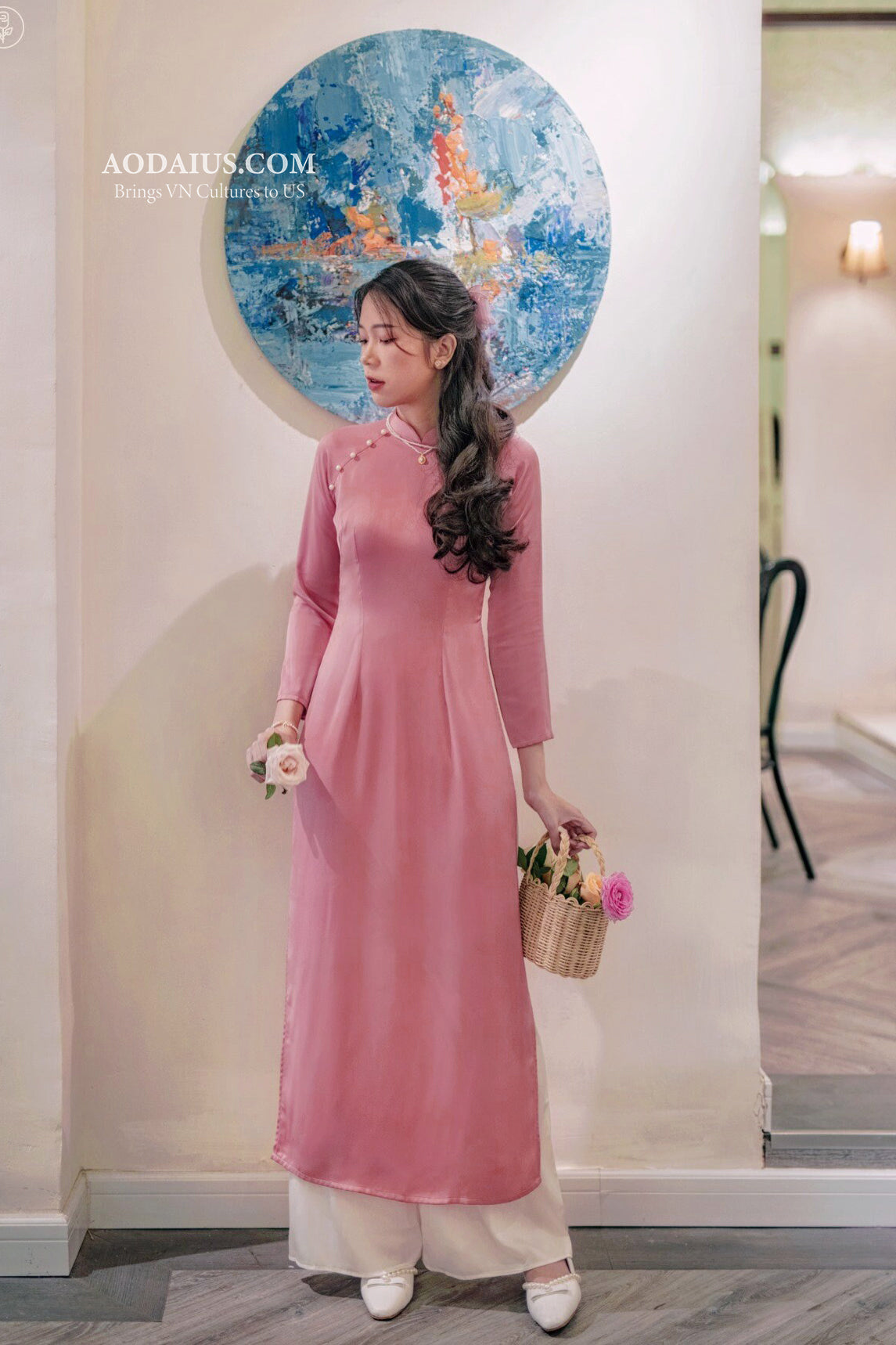 Pink Ao Dai with Pearls | Vietnamese Traditional Dress for Women | Traditional Tet Outfit D39