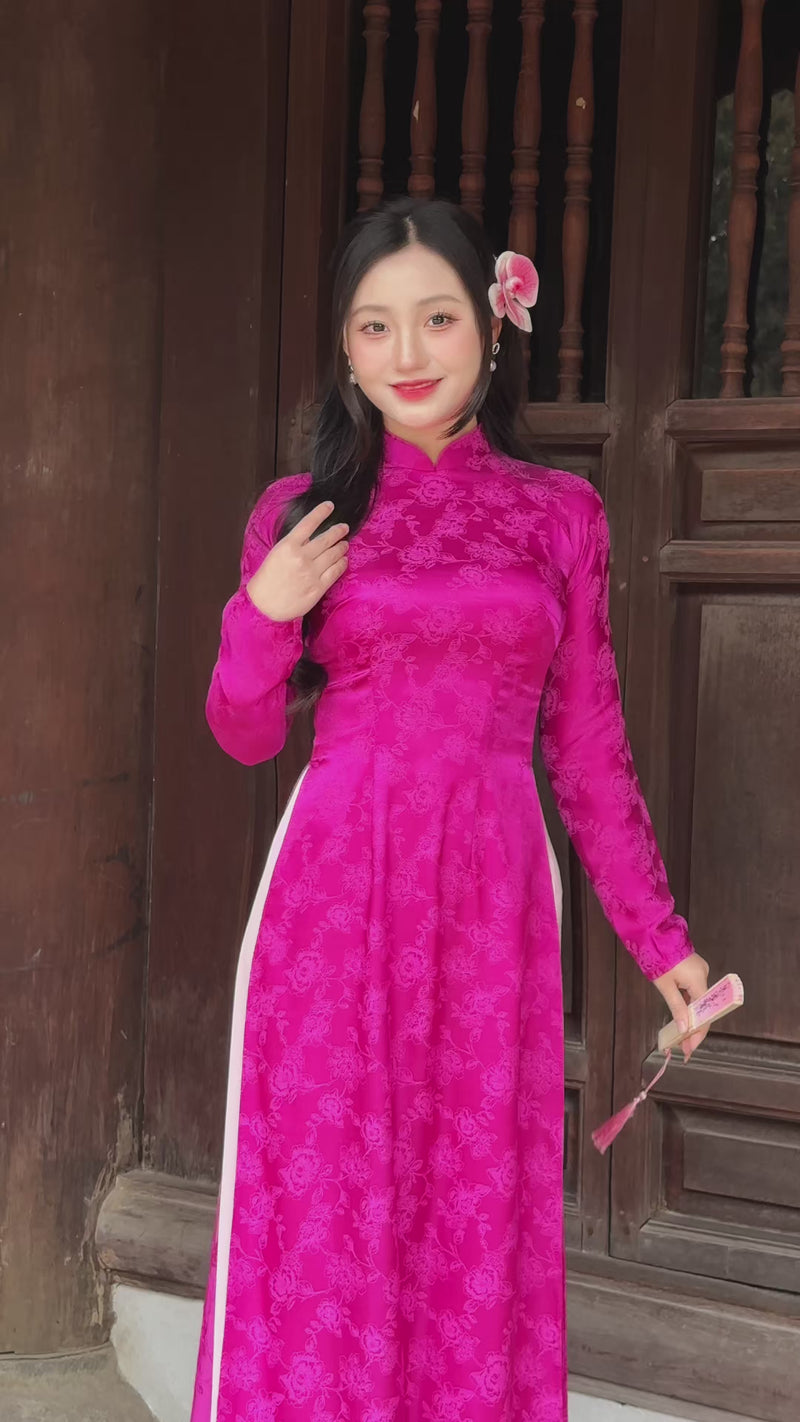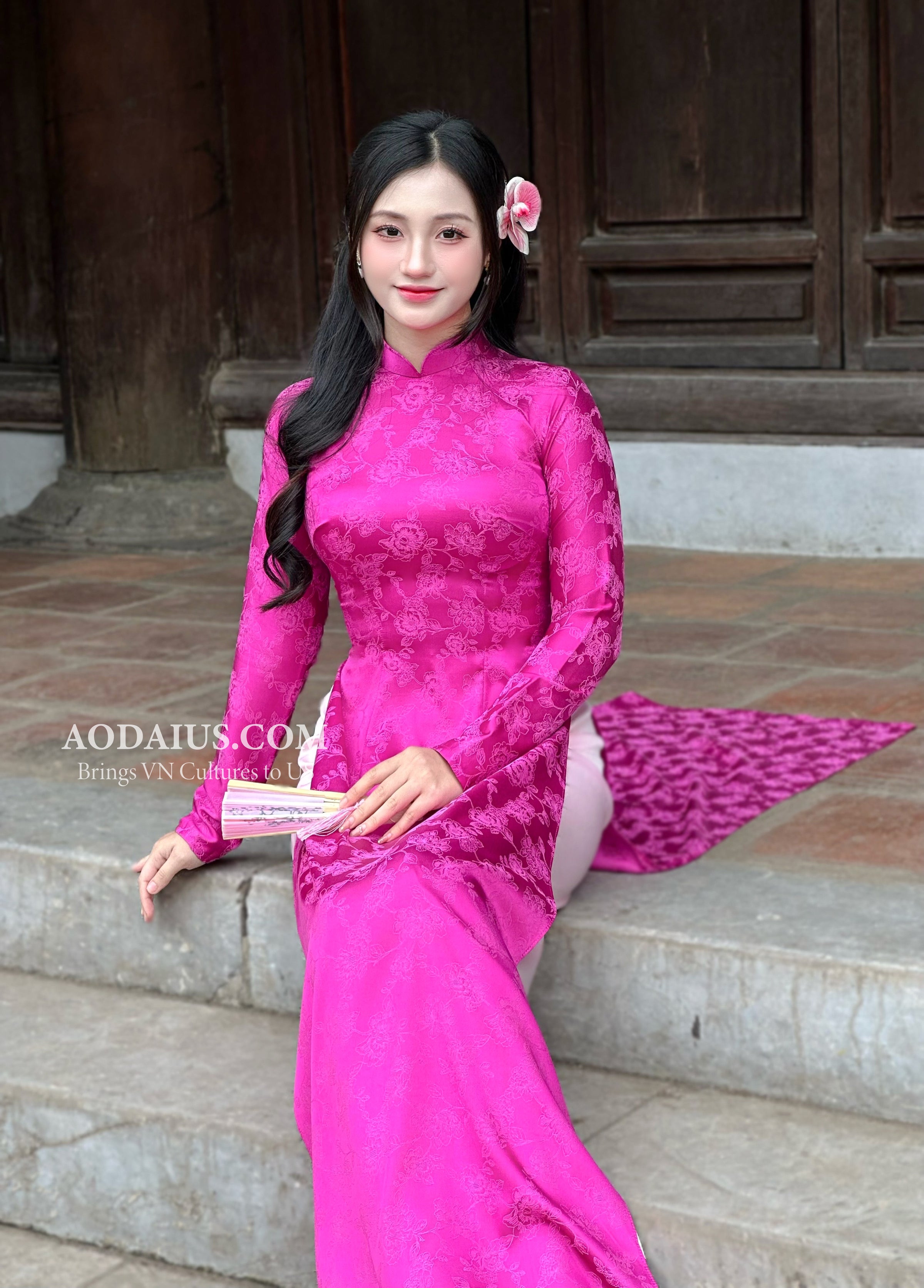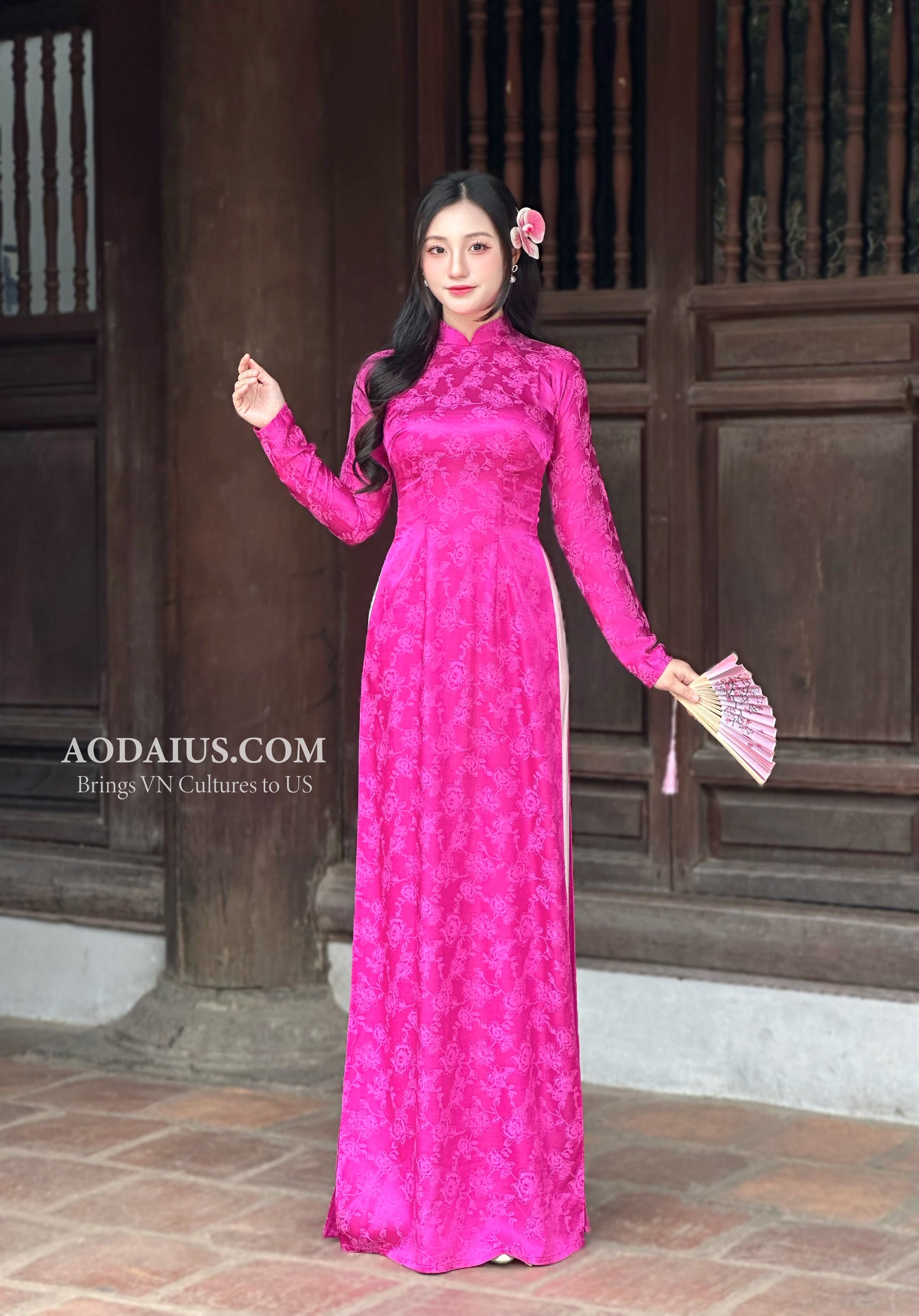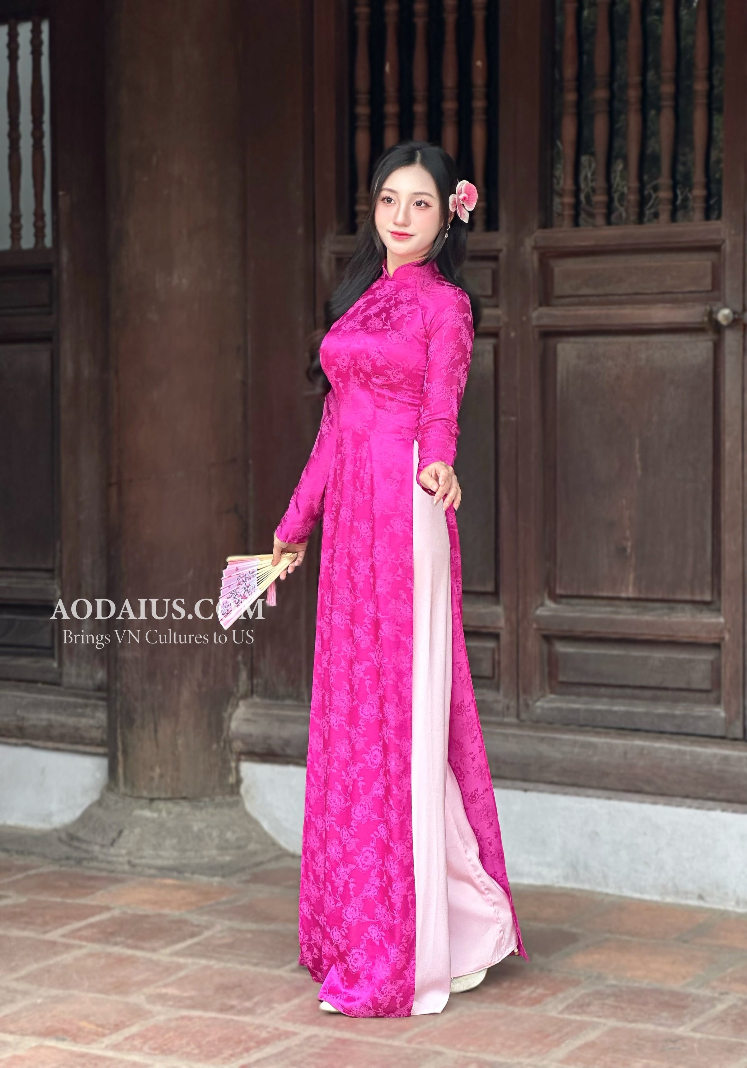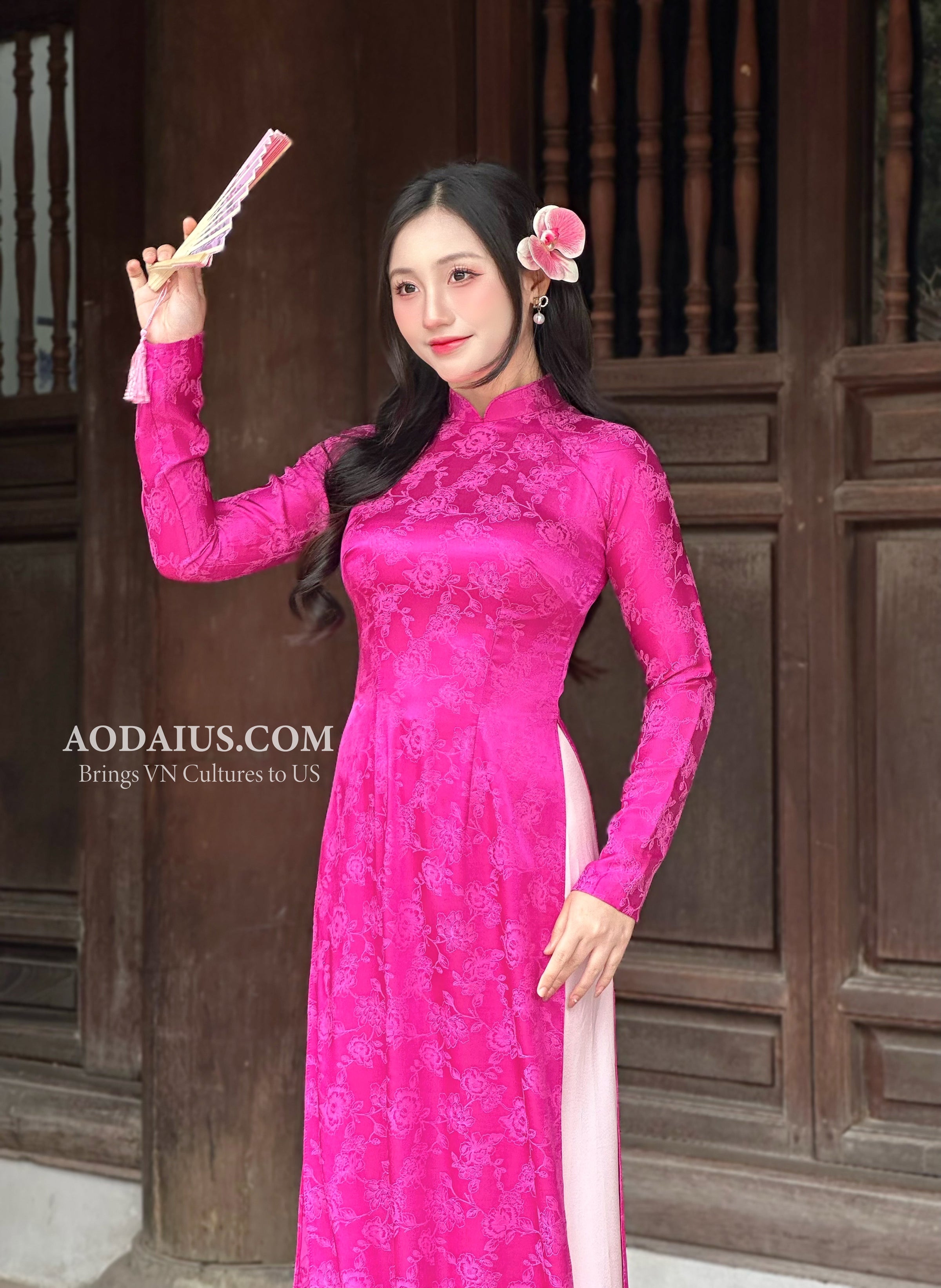Pink Floral Ao Dai Gấm No Pants | Áo Dài Truyền Thống H29
